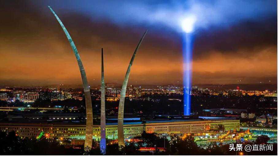 美国五角大楼纪念“9·11”,光之塔射向空中