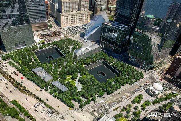 “9·11”事件发生后的第十年,2011年9月11日,“9·11”国家纪念博物馆在世贸双子塔旧址上建成,如今,纪念馆南池边上布满鲜花和美国国旗。