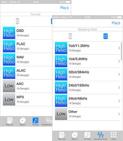 提供AIFF、ALAC、WAV、FLAC等无损音乐格式下载,还有一部分是拥有24bit/96kHz、24bit/192kHz品质的音乐,甚至有/5.6MHz
