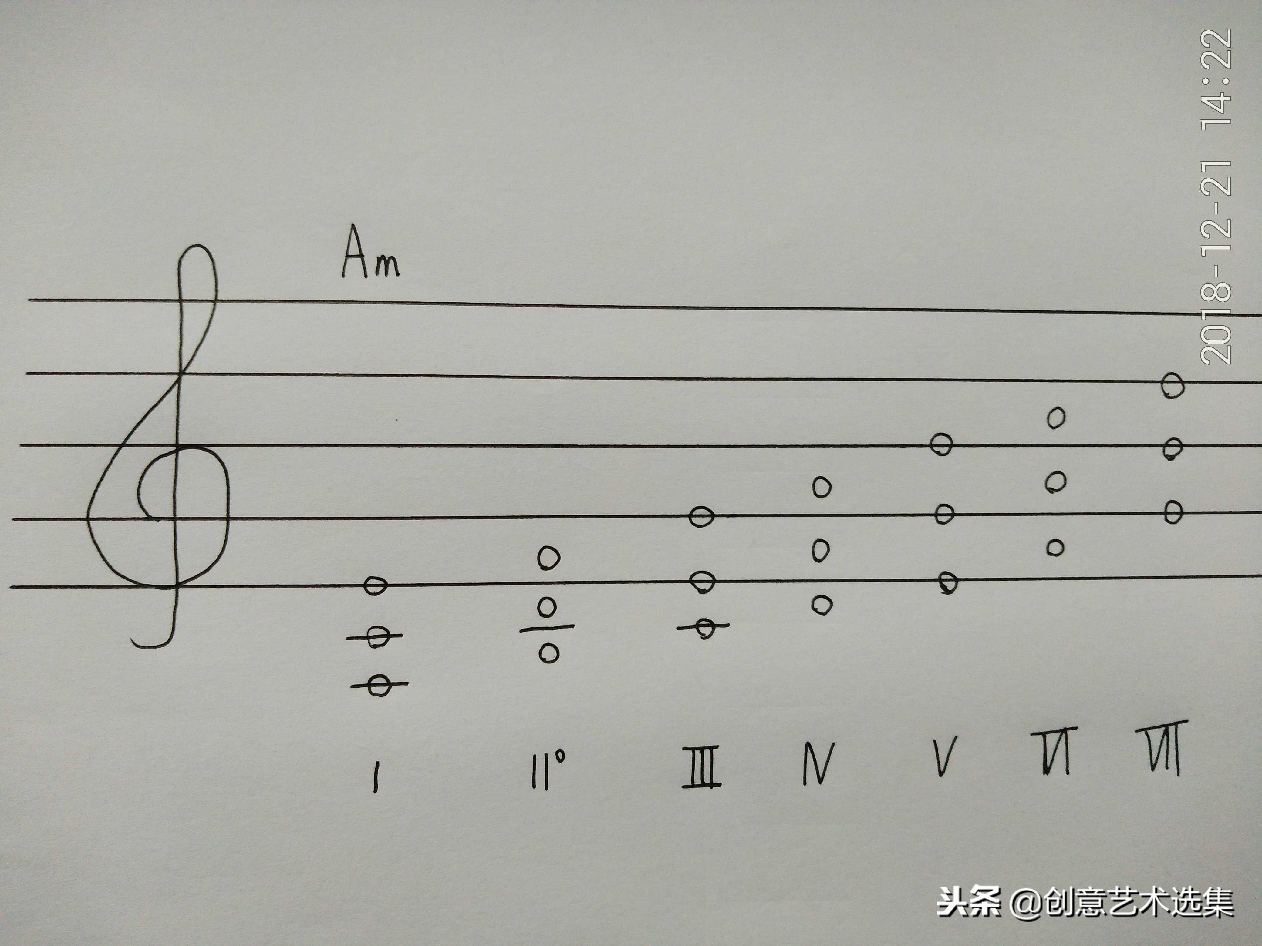 三和弦是3度3度累成的5度,A小调的和声小音阶有7个音,也有7个和弦。