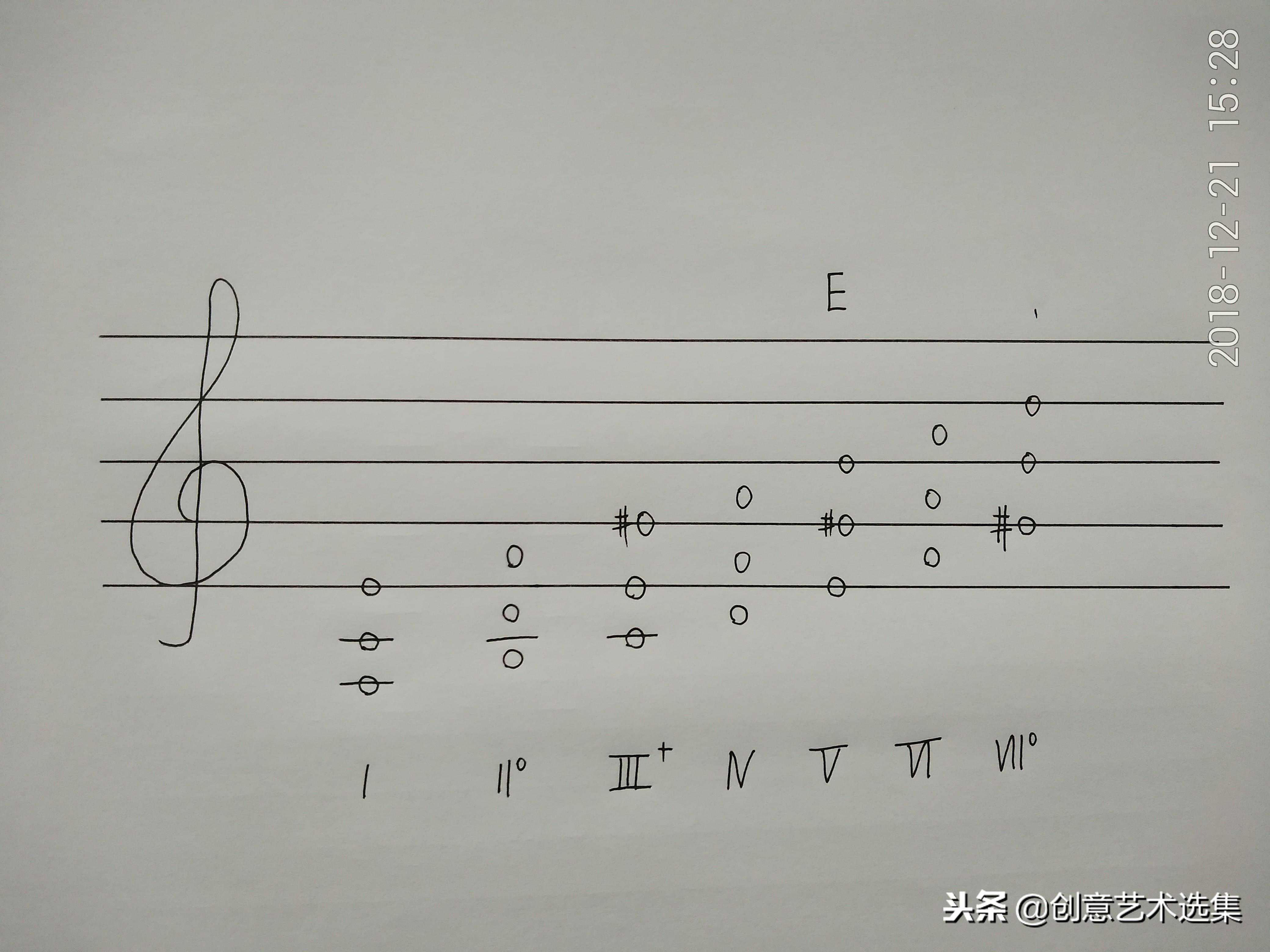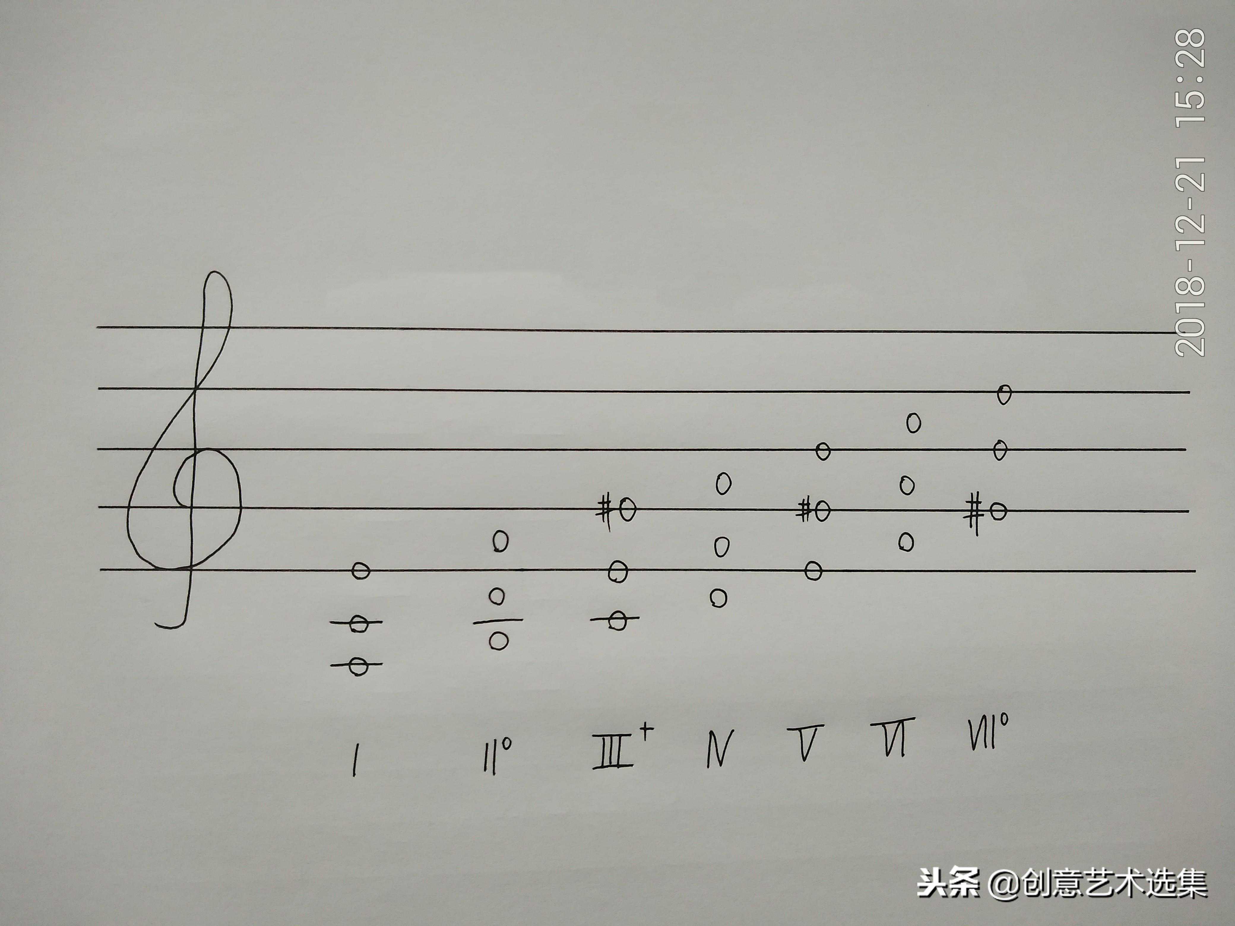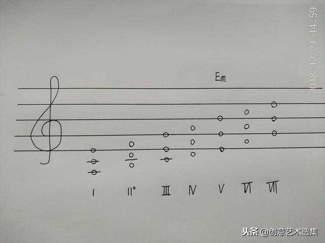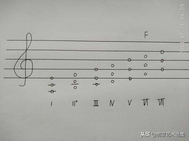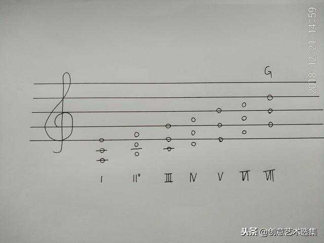 上图中7个和弦的下面是和弦的级数名称(用罗马数字表示),大三和弦大写,小三和弦小写。