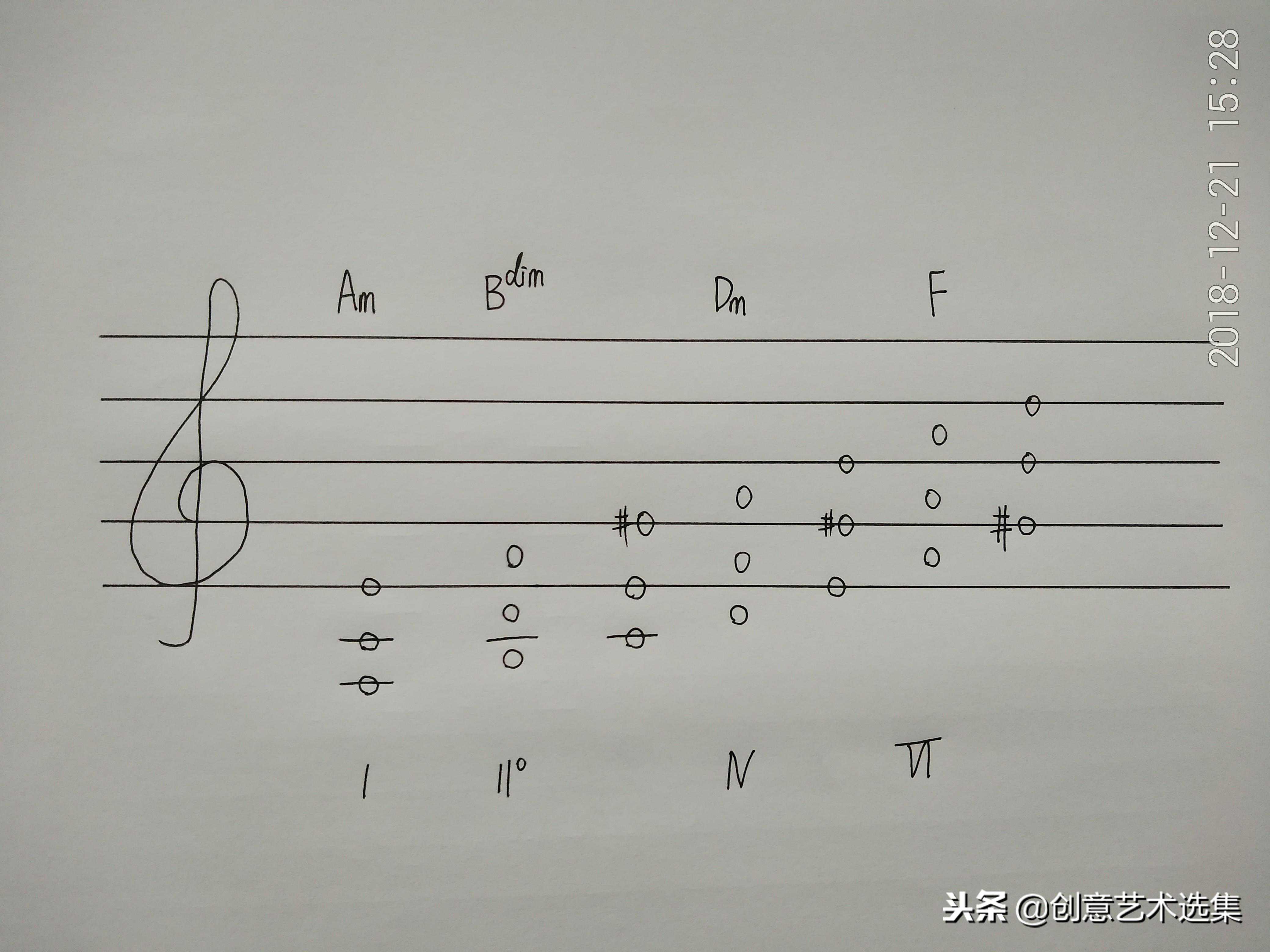 A小调自然小音阶的和弦首先画出A小调的自然小音阶。