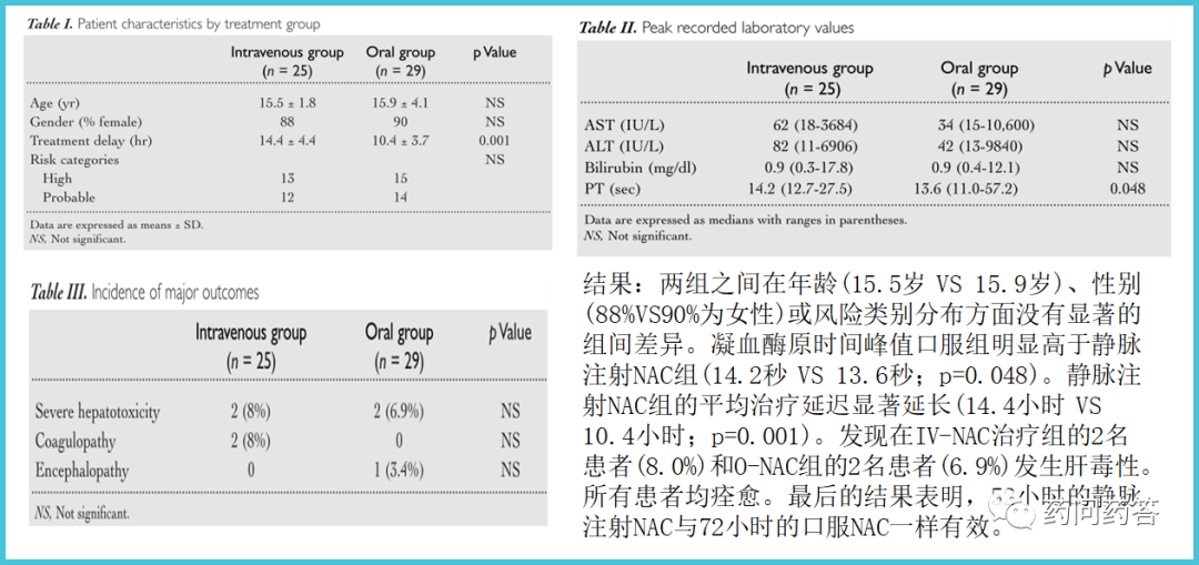 目的:比较静脉注射与口服NAC的有效性,并描述对乙酰氨基酚过量的结果。