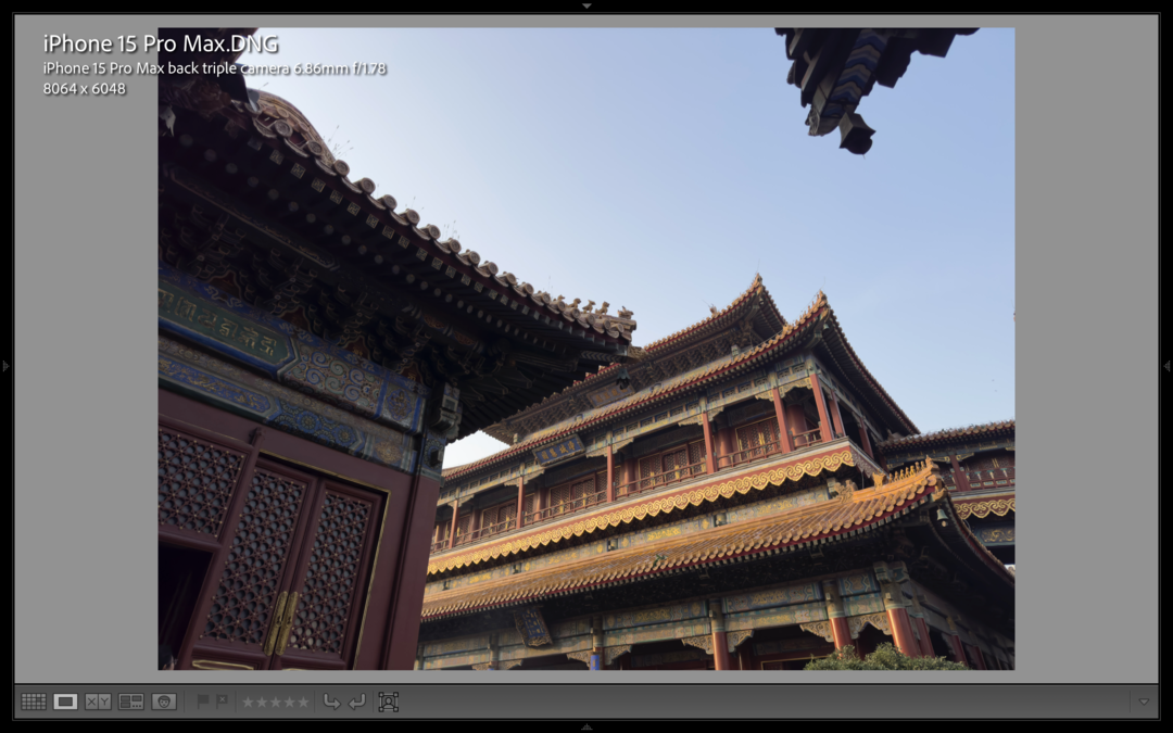 通过实际在CameraRaw中对DNG格式进行后期处理,我发现iPhone15ProMax的这枚长焦镜头的宽容度表现要比预想的好一些,尽管相比主摄的动态范围要小一些,但是也基本可以满足照片后期对曝光的调整和色彩的处理要求。