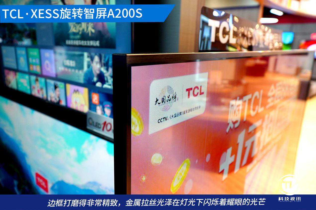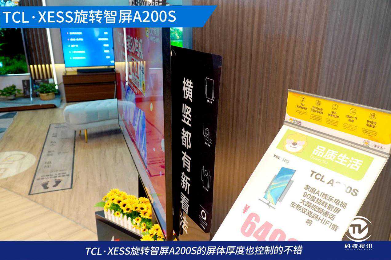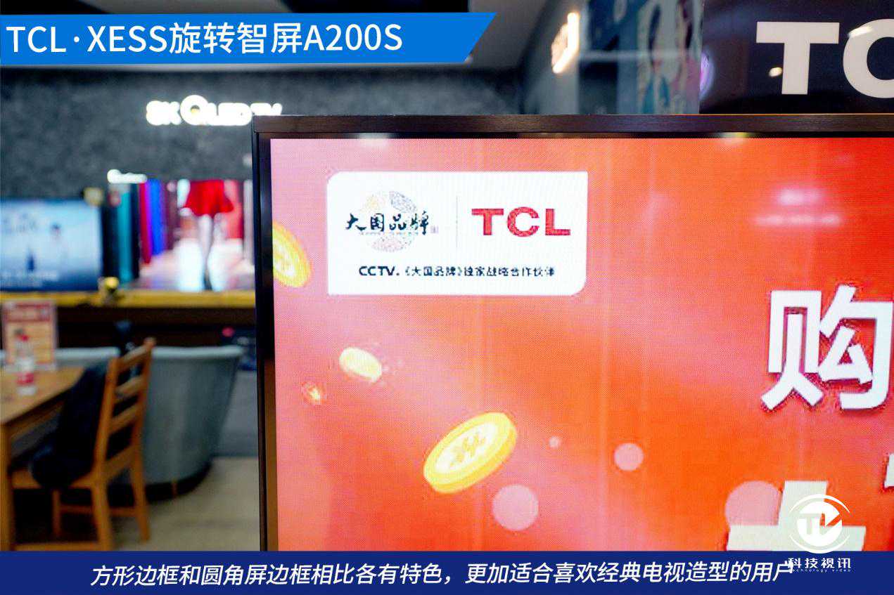 TCL·XESS旋转智屏系列电视共有A200PRO、A200PRO-T以及A200S这三种型号,配置基本一致,仅外观上略有不同,前两款是电商专供,最后一款主要供应线下渠道。所以我们在卖场见到的就是这款A200S,它与前两款最大的不同之处就是屏幕呈现方形设计。