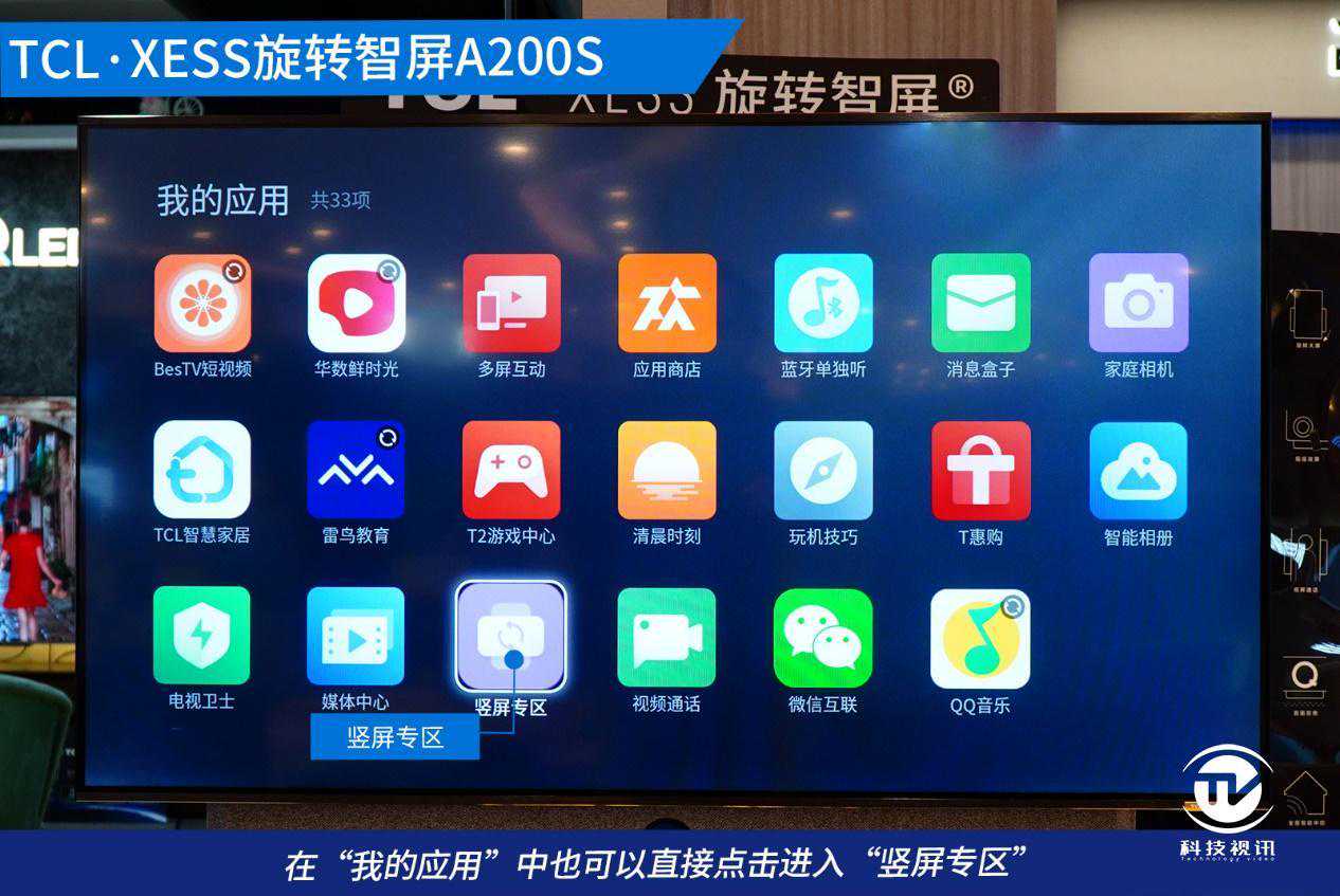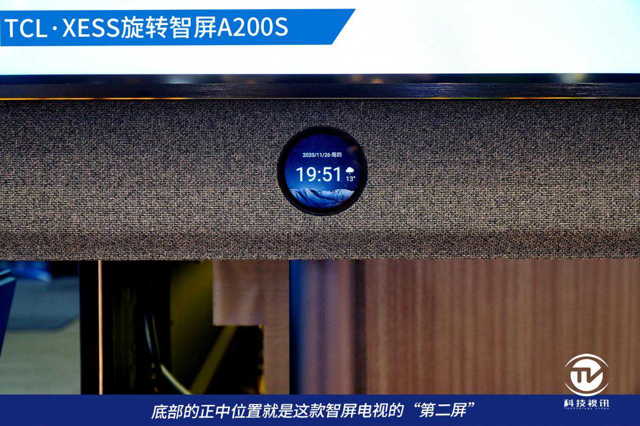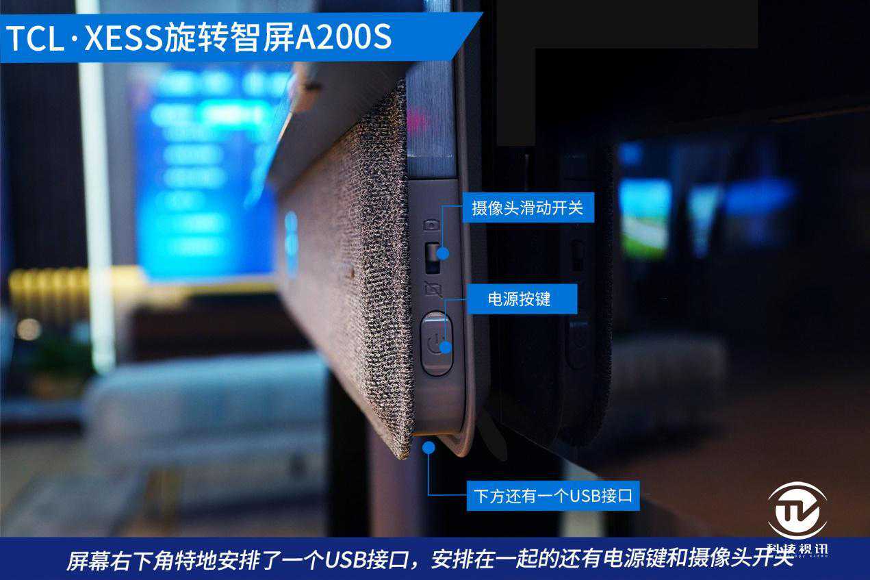 TCL·XESS旋转智屏系列电视共有A200PRO、A200PRO-T以及A200S这三种型号,配置基本一致,仅外观上略有不同,前两款是电商专供,最后一款主要供应线下渠道。所以我们在卖场见到的就是这款A200S,它与前两款最大的不同之处就是屏幕呈现方形设计。