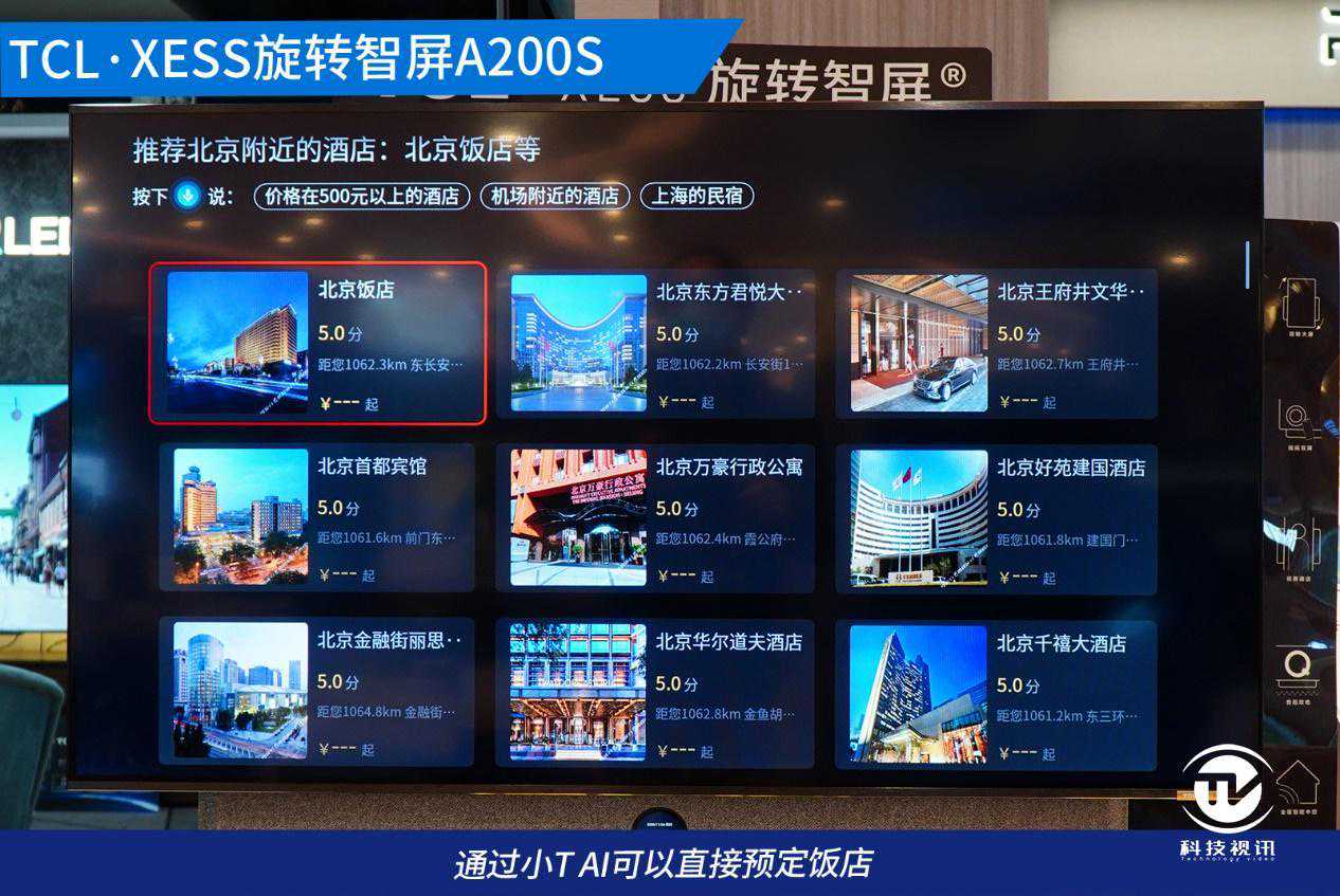 TCL·XESS旋转智屏A200S搭载的人工智能AI非常强大,除了常用的搜片之外,还可以查看天气、预定酒店、外卖点单、在线购物,以及打开智屏中已经安装好的应用。尽管商场门店环境嘈杂,但是TCL·XESS旋转智屏A200S依然能够准确而快速地响应笔者的语音指令,体现出了相当成熟可靠的远场拾音技术和强劲的AI能力。