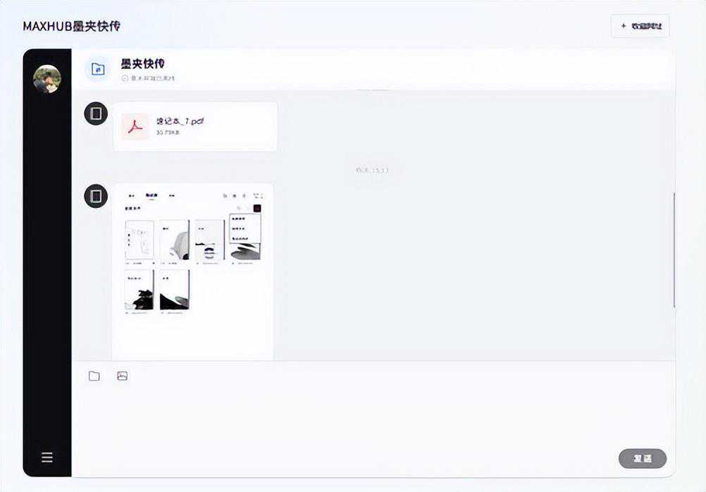 MAXHUBM6Pro智能办公本拥有墨夹快传的功能,只需要在电脑端打开网页,就可以实现M6Pro和电脑端的资料双向互传的功能。微信聊天中的图片、文档、甚至PPT、都能直接分享到M6Pro上,阅读和批注都更便捷。并且开启云笔记同步功能之后,就可以在微信小程序上看到会议笔记,随时同步,同时手机上的内容也可以快速传输到MAXHUBM6Pro智能办公本之上。