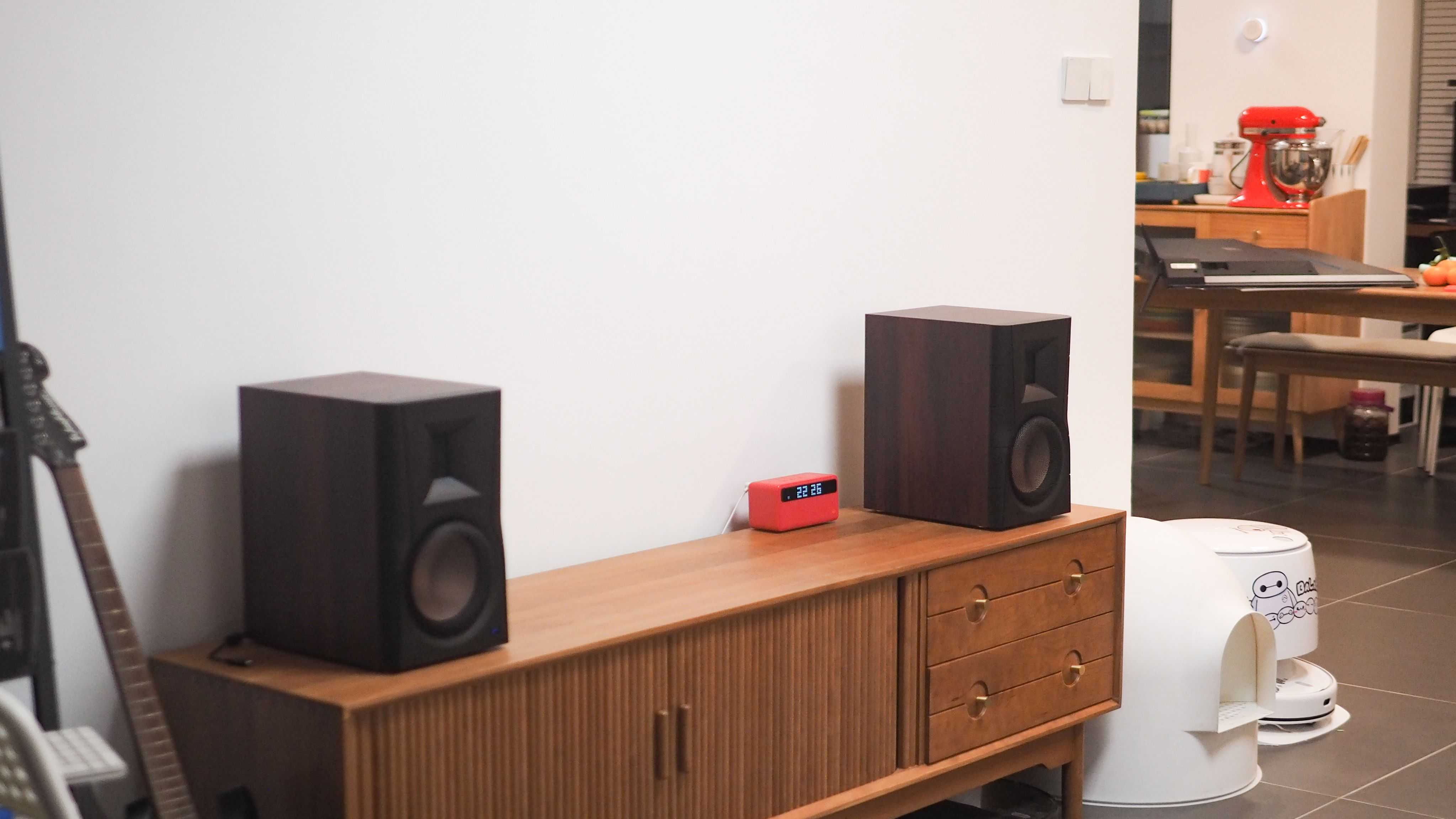 音箱放在客厅的电视柜上,有时候我会调大音量,去院子里面玩,客厅开着门,在院子里听音乐感受也很不错。因为音量没有开到顶,所以暂时没有遭到邻居的投诉。