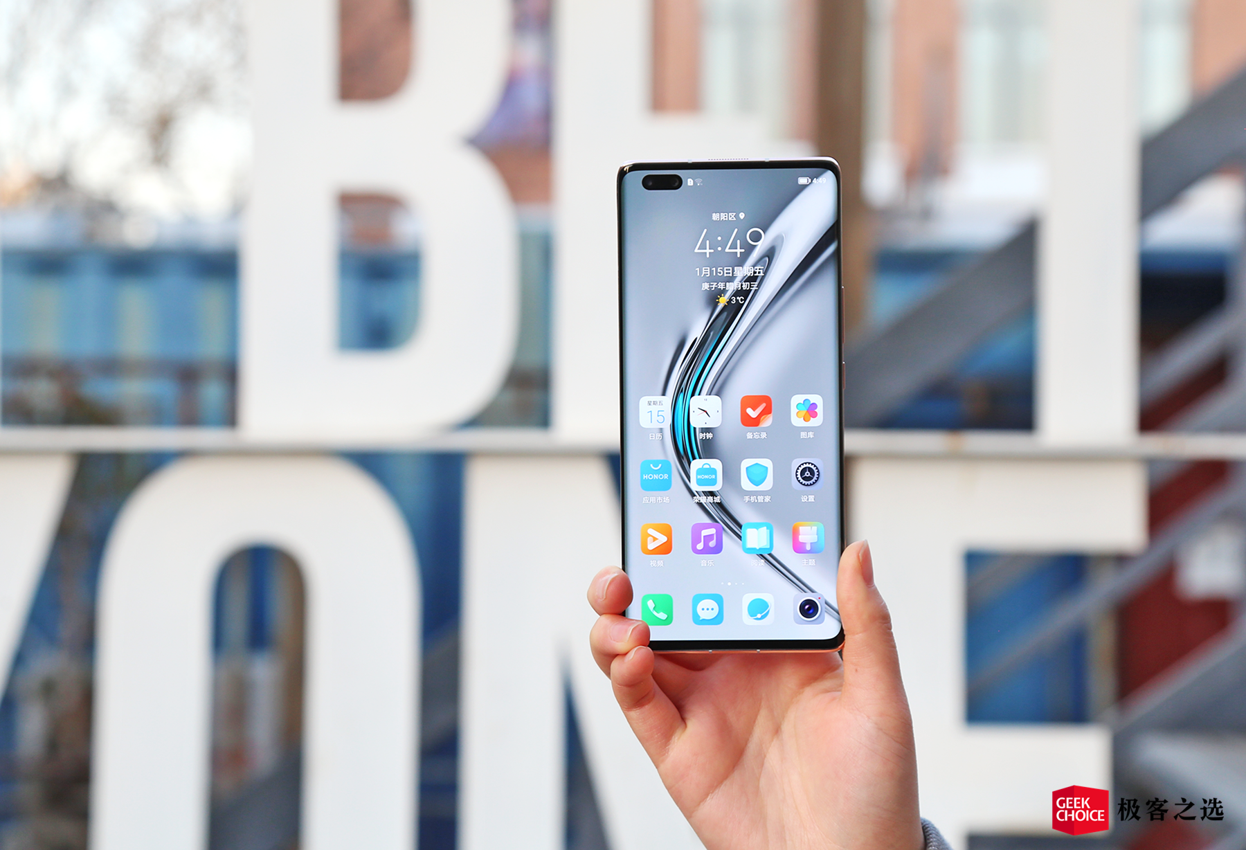 荣耀V40配备了一块6.72英寸「超曲飞瀑屏」,区别于常规曲面屏,由于它的左右两侧弯折角度要来得更大一些,会给人一种机身被屏幕所包裹的感觉,配合极窄的上下边框宽度控制,亮屏后正面整体观感非常棒。同时,小曲率方案很大程度上改善了曲屏边缘灰边问题。