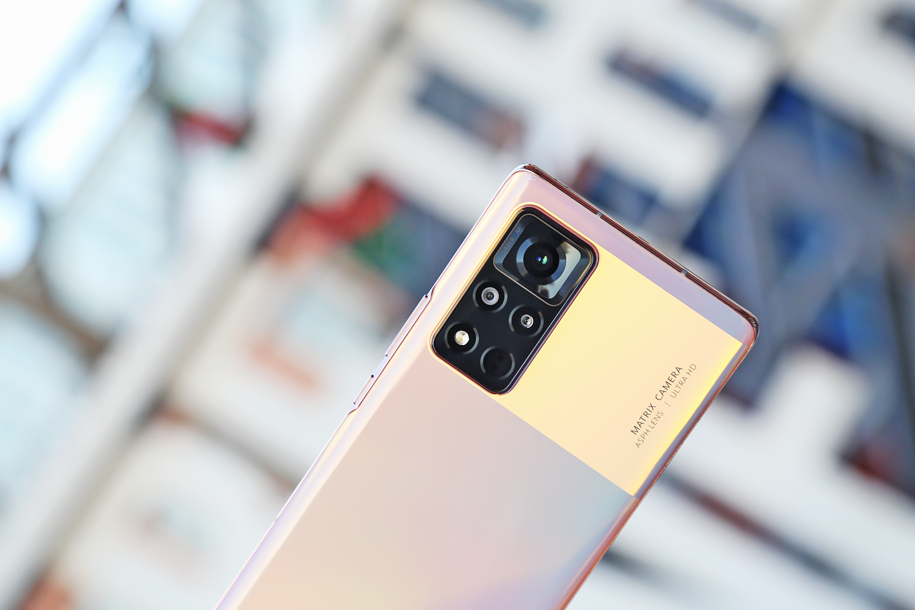 正面看上去,蔷薇金版本荣耀V40后盖为淡淡的粉色,随着光线角度变化,能够呈现出多种不一样的颜色,非常特别。不过更特别的地方,是后置相机向右延伸的那部分矩形区域,由于其采用了和后盖整体完全不同的工艺处理,从而实现了「一个后盖,两种观感」的效果。