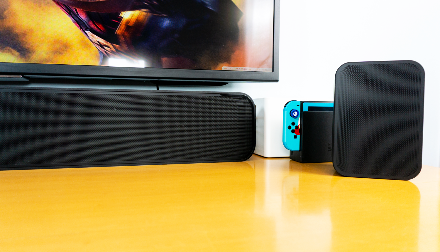 其实就算不是3A大作,只要连接上回音壁都会比较明显地有加成。就以Switch上的《太鼓达人》为例,鼓点声会比只用电视音响输出时更突出,手柄随鼓点声敲击,声音上无任何延迟,连击进入白热化后再配合BGM响起,氛围瞬间拉满,音乐性越强游戏体验也更优。