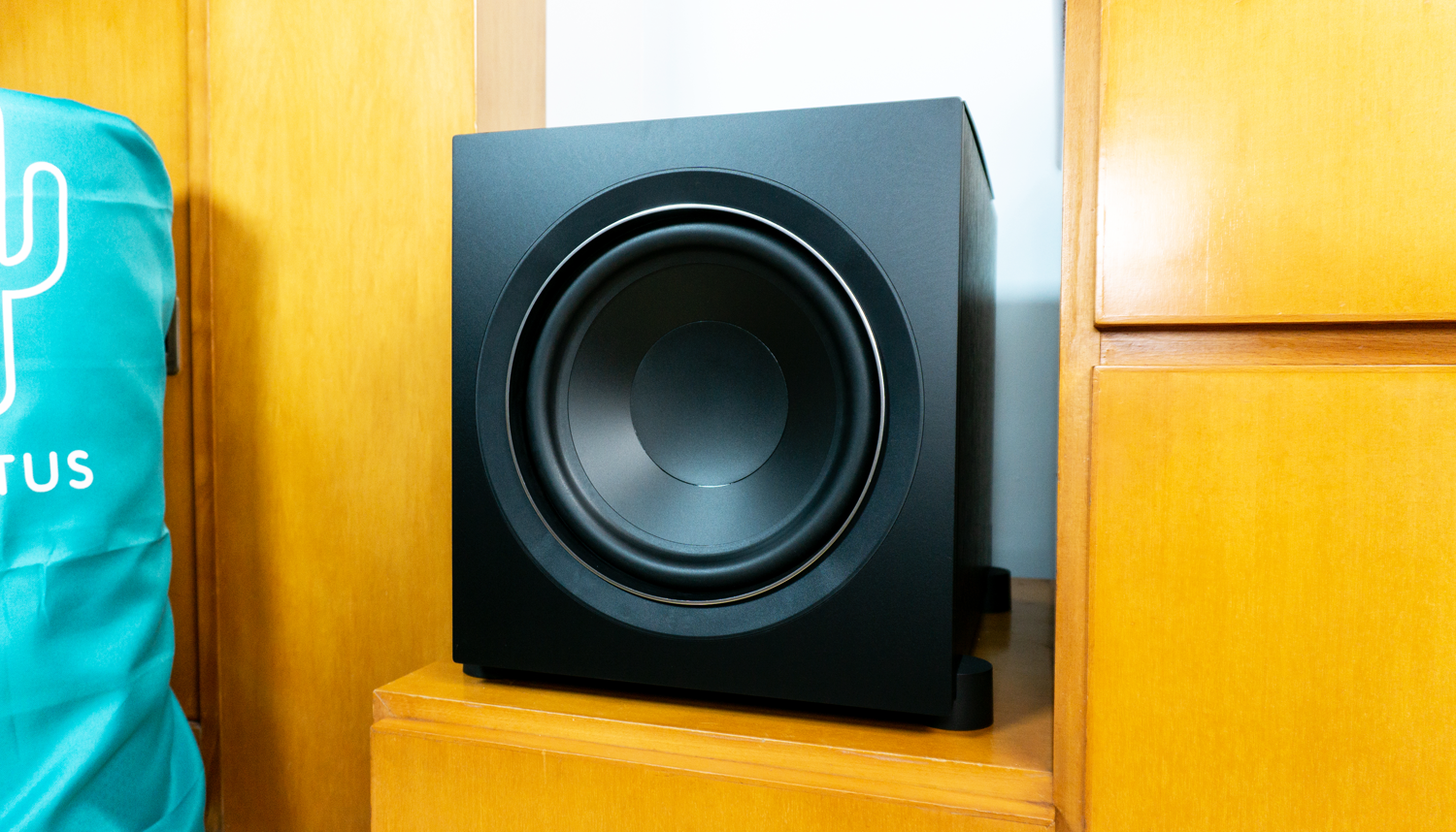 拿掉正面的磁吸网罩后,可以看到一个10英寸的长冲程驱动单元,采用聚丙烯音盆。根据官方参数,箱体内置的是150WRMS功放模块,能够提供210W的强大功率,可提供卓越的低音品质。