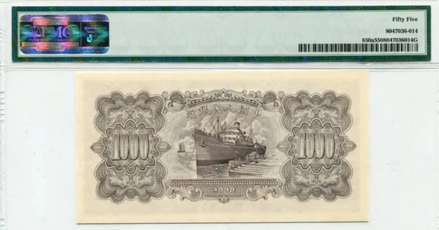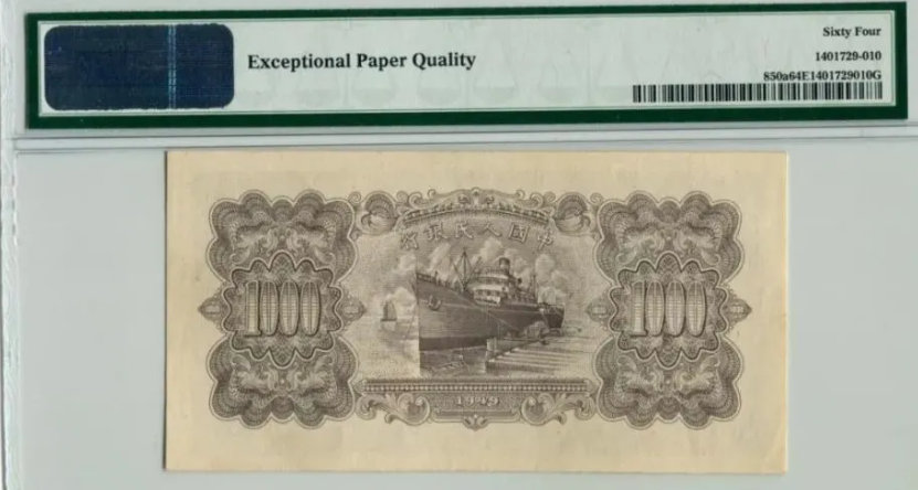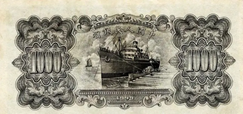 第一版人民币壹仟圆运煤与耕田背面