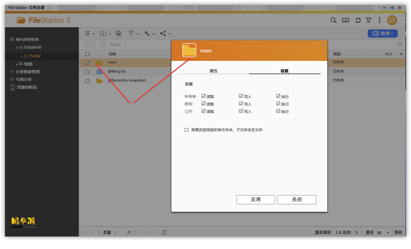 ▼提前使用文件总管创建roon文件夹,给足权限,这个是roon的存储位置。