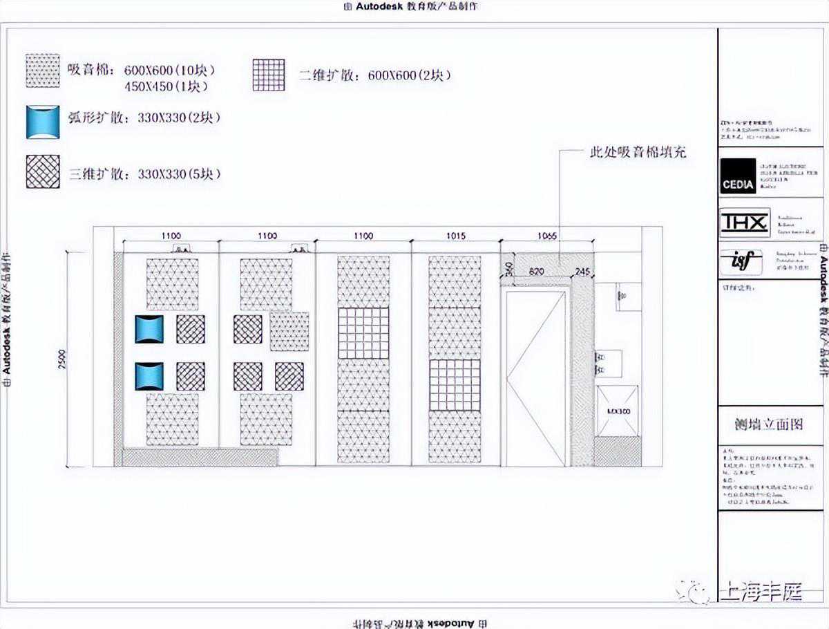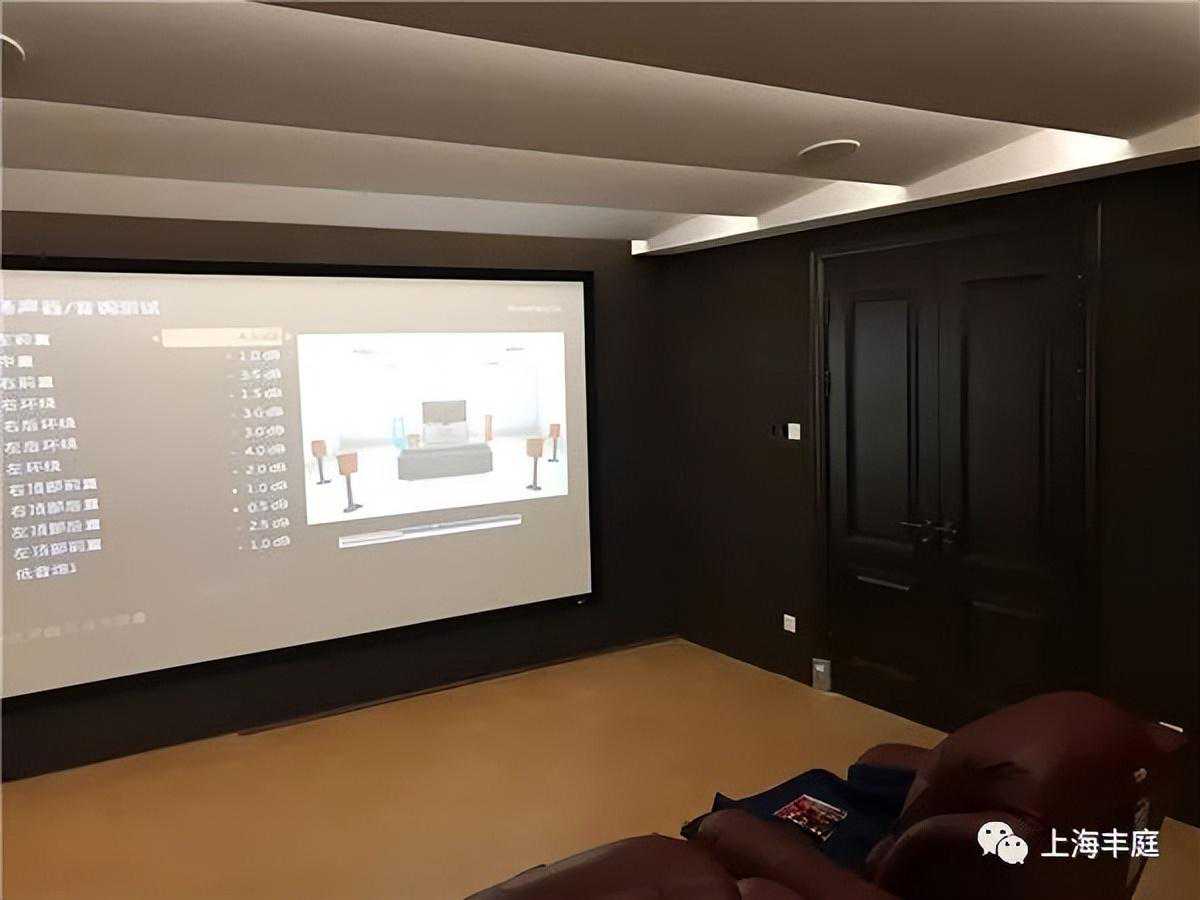 由于2套系统,常规卡拉OK混响时间在0.6-.08S,影院混响时间0.2-0.5S,为了合理的控制影院的混响时间,确保2套系统的兼容性,墙面均做了专业声学处理。