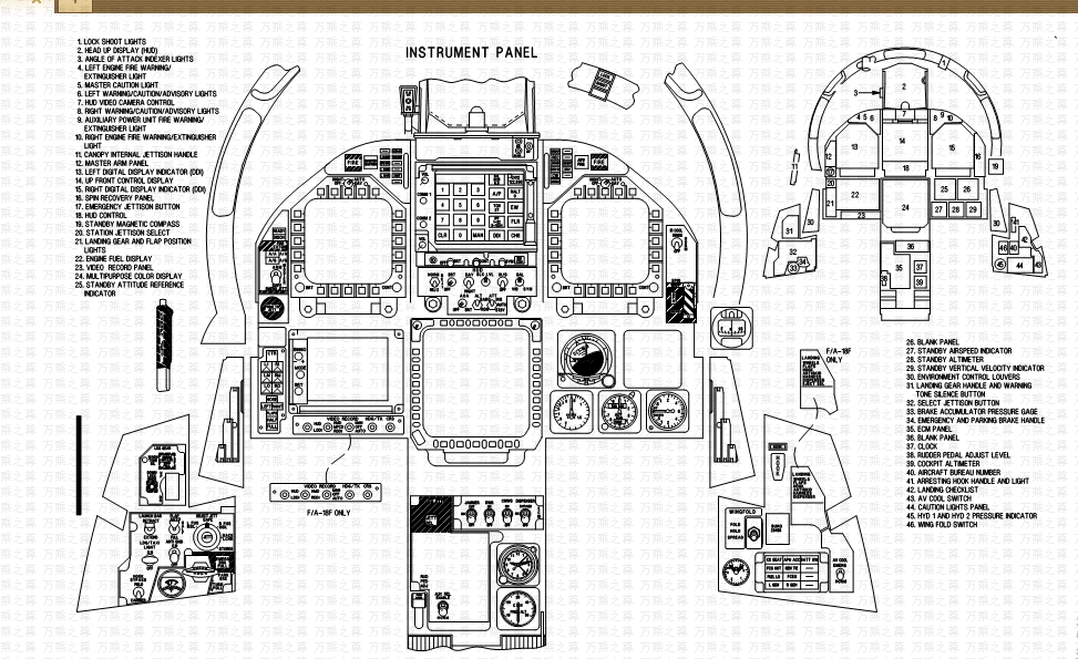 以下是F/A-18E/F大黄蜂战斗机美军原厂技术资料,单是目录就上百页,只能选一点容易懂的给大家看,