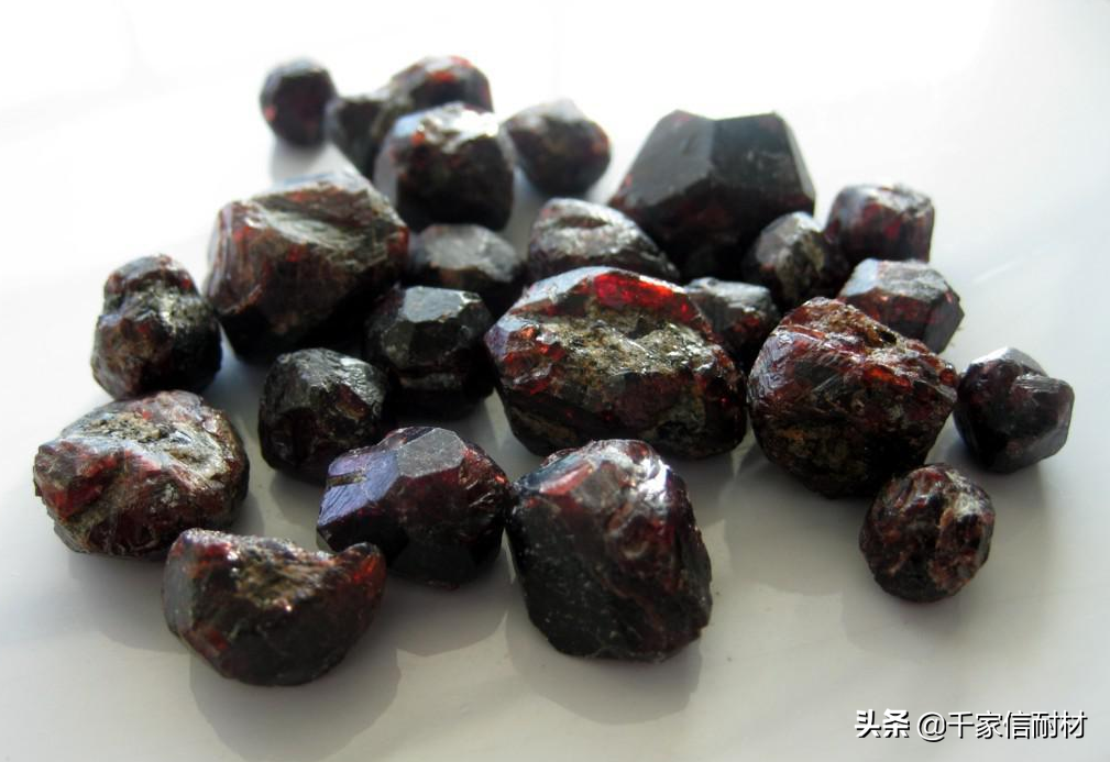 石榴石的晶形较好,显微硬度为13.33Gpa。属于石榴石的矿物种类很多,但适合于作磨料的仅有铁铝石榴石一种,其矿物组成这:3,含量不低于85~90%。