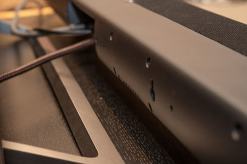 说道基本规格,该产品的结构相对简单。单元配置:正面左右两端各配置2个直径25mm的高音和45×90mm椭圆形中音。在机匣靠近中央位置,朝下配置有直径75mm的2个低音。此外没有配备额外的低音炮,是一台简洁的一体化回音壁产品,安装极其简单。