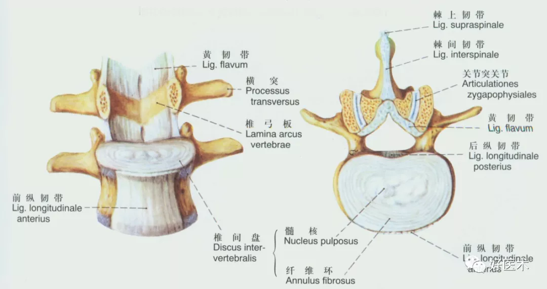 (4)横突间韧带:连结相邻的两个横突之间,在颈椎部此韧带常缺如;胸椎部者常呈细索状;腰椎部者发育较好,呈膜状。