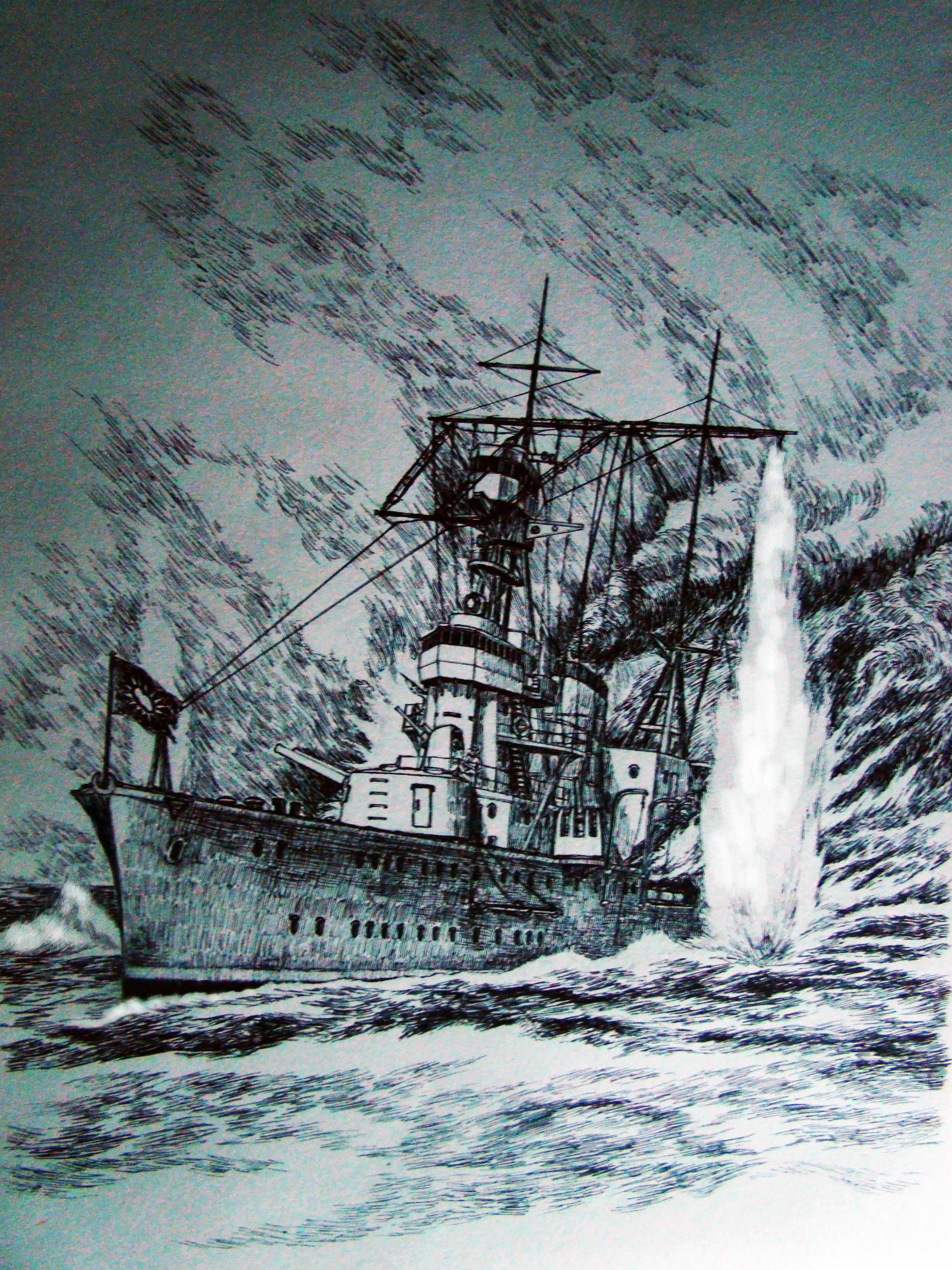 南京沦陷后不久,日方于1938年2月16日将本舰扶正,经被三菱长崎造船所接管的原南京政府海军江南造船所简单修理后拖航佐世保,以“见岛”之名充作宿舍舰至1943年,后被重新武装为海防舰,更名“八十岛”,强化武装后于1944年9月25日定舰级为二等巡洋舰,充当护航船队旗舰。1944年11月25日,该舰在护卫运输船队前往菲律宾马尼拉途中在吕宋岛的圣克鲁兹海域被美军航母舰载机围攻炸沉,1945年1月10日除籍。
