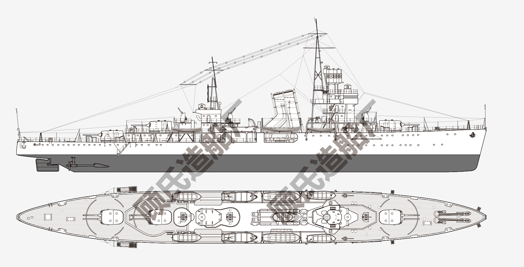 武备:日制三年式140毫米双联装舰炮3座,三年式76毫米高射炮3门,阿姆斯特朗47毫米速射炮3门,六年式533毫米双联装鱼雷发射管2具,九二式7.7毫米机枪4挺,三十节式7.9毫米机枪6挺。