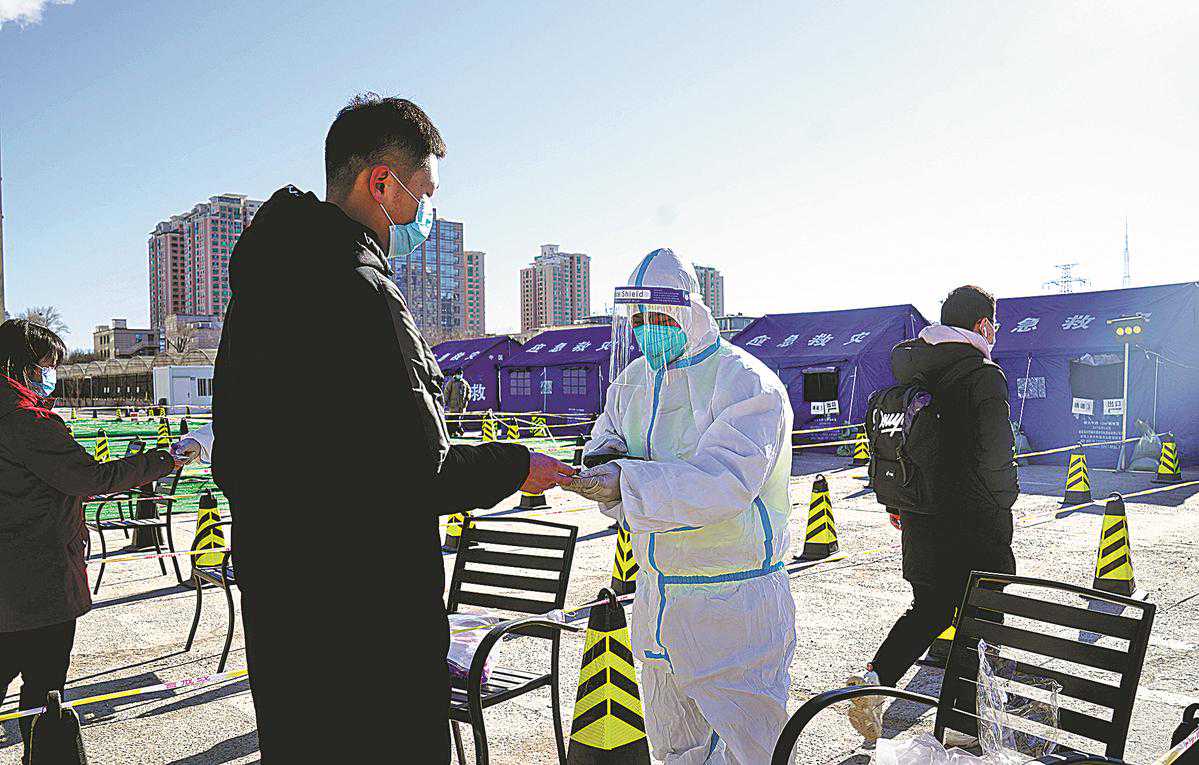 PeoplewaitforCOVID-19testsatanemergencytestingsiteinBeijing'sHaidiandistrictonMonday.[PhotobyWANGHAIXIN/FORCHINADAILY]