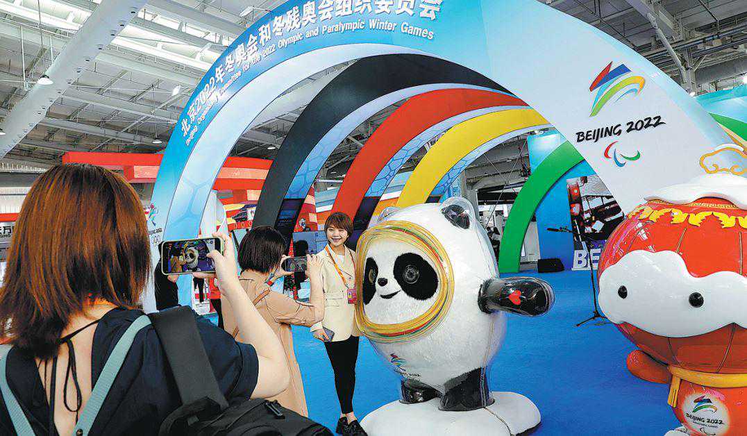 Beijing2022mascotsBingDwenDwenandShueyRhonRhonareamongtheattractionsattheWorldWinterSports(Beijing)ExpoatShougangIndustrialParkinthecapital.[Photo/Xinhua]