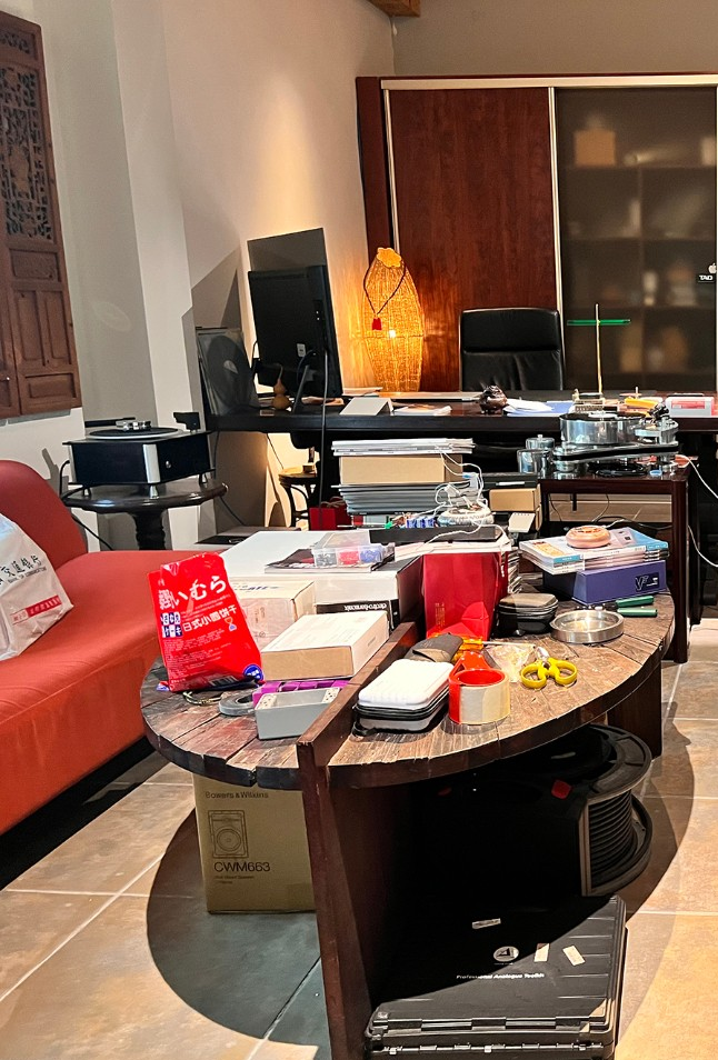吴总作为军眷家属,自幼在多个地方待过,最难忘情的仍是故乡,所以选择杭州创业、居住,甚至要在这里养老。他在小孩出生那年开办了艺源音响,即将结婚的儿子没有继承衣钵,却也独立闯出一片天地,成为AR行业内颇受瞩目的研发专才。将近三十年的发展,吴洪川经手过几乎所有Hi-品牌,国产的器材只要够好,他也不吝推荐给用家,这二年就陆续安装了几套隐士音响的励磁号角音箱,那重量惊人的驱动头与体积巨大的碳纤维圆号角,恐怕一般人都难以对付。