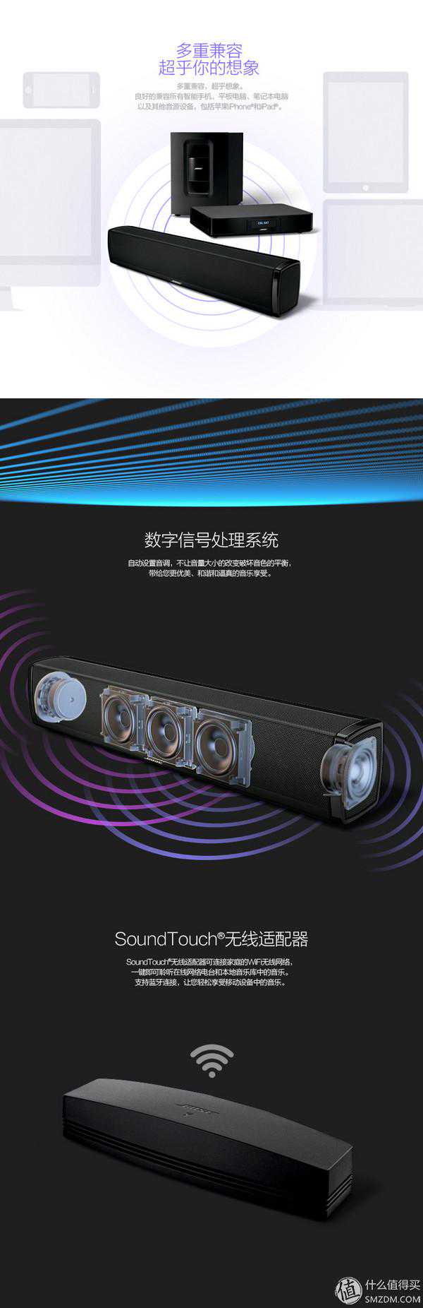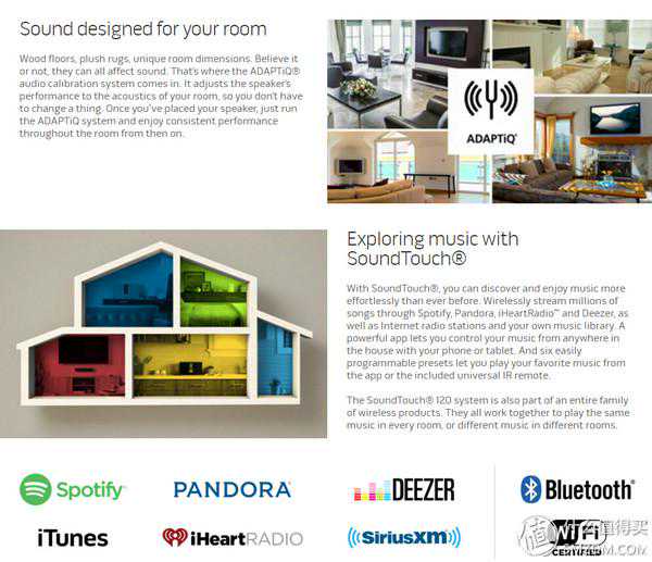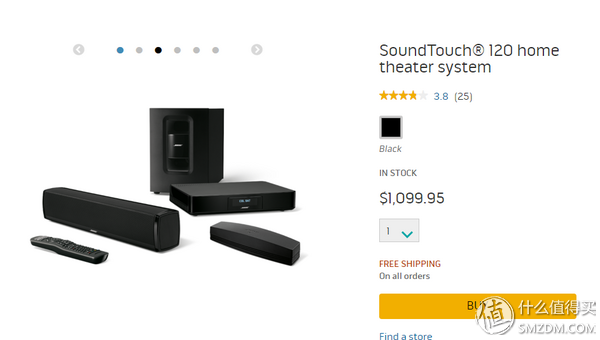 BOSESoundTouch120实际上就是CineMate120的升级版本(多了一个无线适配器)。但是BOSE中国的官网上面居然没有这个型号的介绍,仍然只有老版本的CineMate120。于是我登录了BOSE美国的官网查阅了相关的信息。