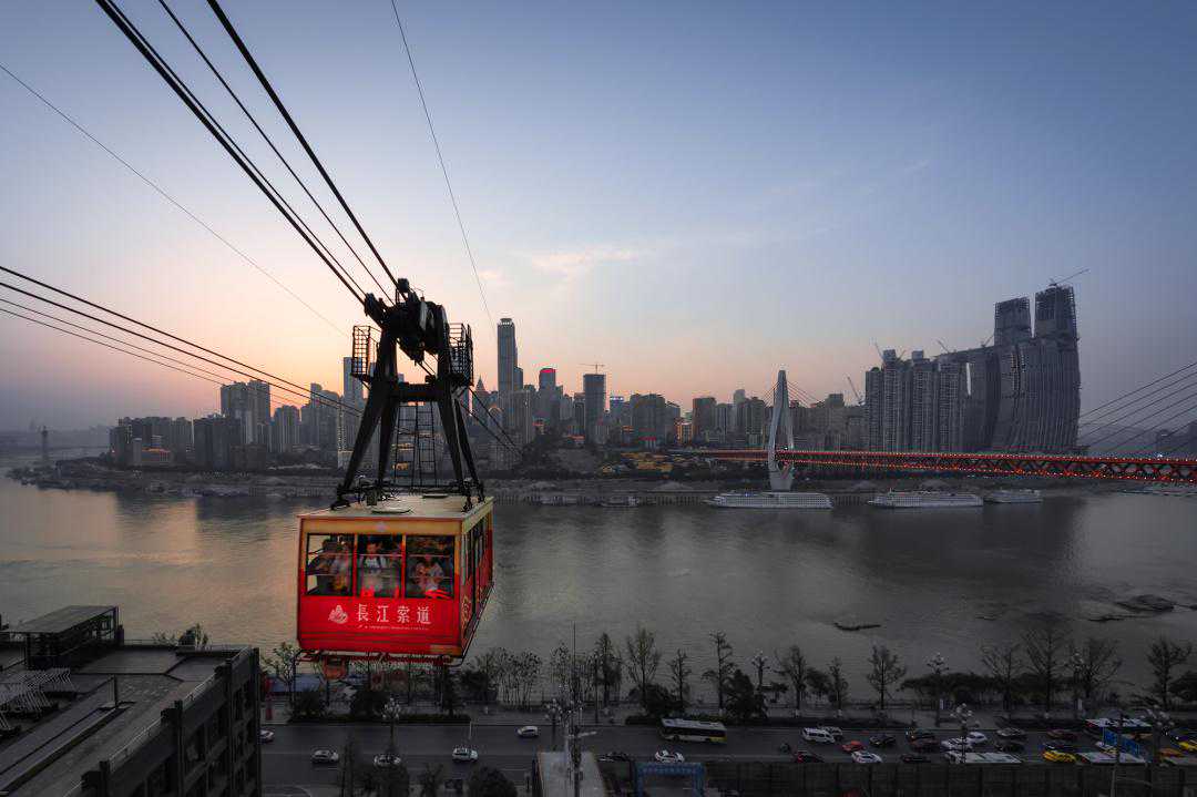 长江索道被誉为“山城空中公共汽车”。穿梭高楼大厦之间,飞渡浩瀚大江之上,行游山水都市之巅,往返乘坐,可全方位俯瞰重庆“江山一体”的美景。
