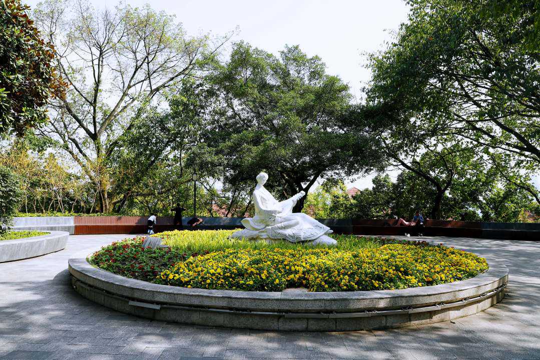 园内坐落着几处修建于抗战时期的老建筑,还设有休闲惬意的亲水步道。流连于此,心情自然而然会沉静下来。