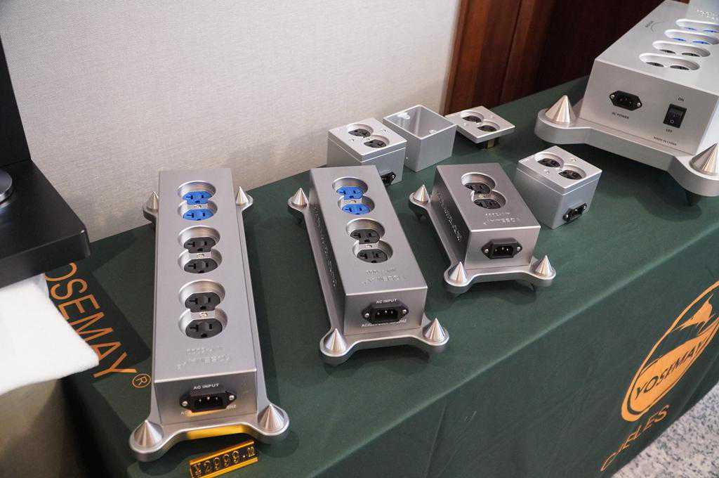 展示金枪鱼全系列线材产品和调音附件,现场开声演示使用上海润影音提供的BW音响及配套的CD播放器和功放