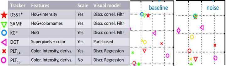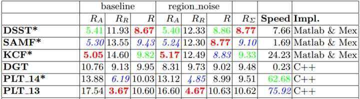第四部分:14年的尺度自适应VOT与OTB一样最早都是2013年出现的,但VOT2013序列太少,第一名的PLT代码也找不到,没有参考价值就直接跳过了。直接到了VOT2014竞赛()。这一年有25个精挑细选的序列,38个算法,那时候深度学习的战火还没有烧到tracking,所以主角也只能是刚刚展露头角就独霸一方的CF,下面是前几名的详细情况: