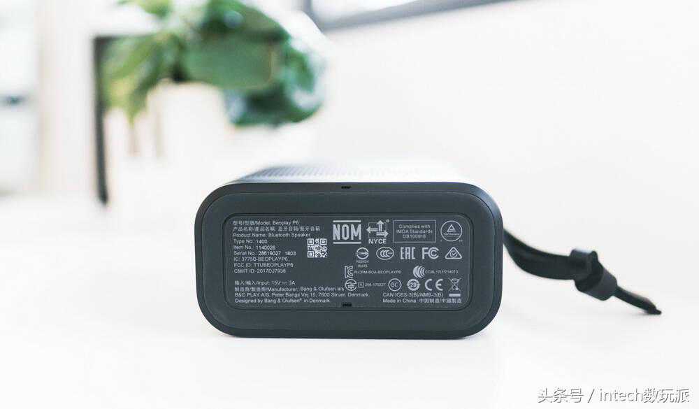 底部的铭牌,P6的内置电池为2600mAh,充电时间约为3小时左右,播放时间有16小时,从续航时间上来看在便携型音箱里是比较长的。