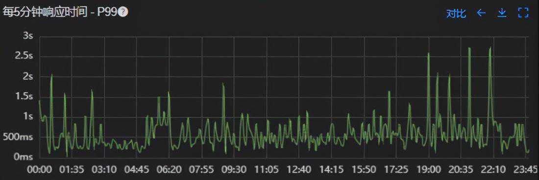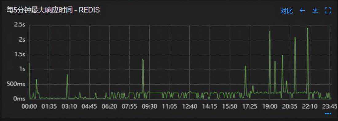 上线后Redis流量翻倍问题得到解决,Redis最大响应时间突刺有所缓解,但依旧没能彻底解决,说明大流量查询不是最根本的原因。