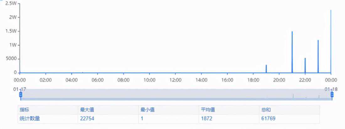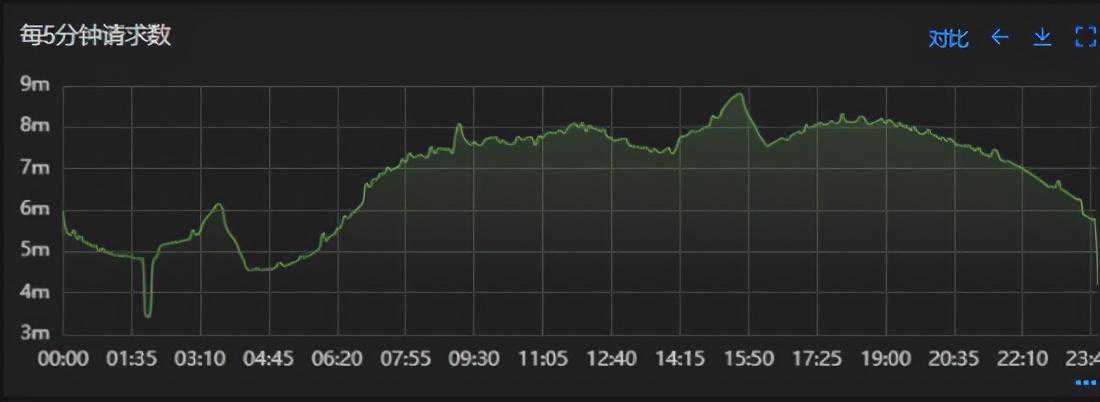 其次进行流量分析,发现每天固定时间点会有流量突增的情况,流量突增的点跟报错的时间点也吻合,初步判断为短时大流量导致。