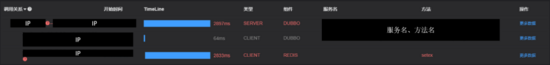 调用链显示,虽然下游接口的P99线在峰值流量时存在突刺,超出1S,但因为熔断超时的设置(熔断时间500MS,coreSizemasSize=50,下游接口平均耗时10MS以下),判断下游接口不是问题的关键点,为进一步排除干扰,在下游服务存在突刺时能快速失败,调整熔断时间为100MS,dubbo超时时间100MS。