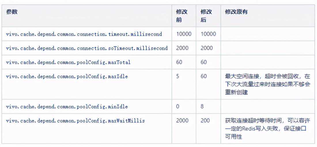 Redis连接池在系统冷启动时,对连接池的预热,不同commons-pool2的版本,冷启动的策略也不同,但都需要配置minEvictableIdleTimeMillis参数才会生效,可以看下common-pool2官方文档,对常用参数都做到心中有数,在问题出现时能快速定位。