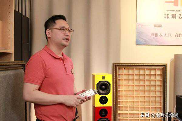 为了挑战声雅的这台A-238的极限,今天的演示还特别追加难度使用两对SCM7特别版以叠罗汉的方式,倒置并联成为哑铃式单元布局来出声。SCM7本身对功放已经有很高要求,采用并联方式使得音箱电阻减半,对功放来说便是个更大的挑战。而之所以采用一黄一红配黑色脚架,形成德国国旗的配色,这是暗暗呼应声雅A-238这台ATC特别定制版所携带的德国血统。随后请出了声雅音响的创始人何焯坚先生对A-238进行详尽剖析讲解。