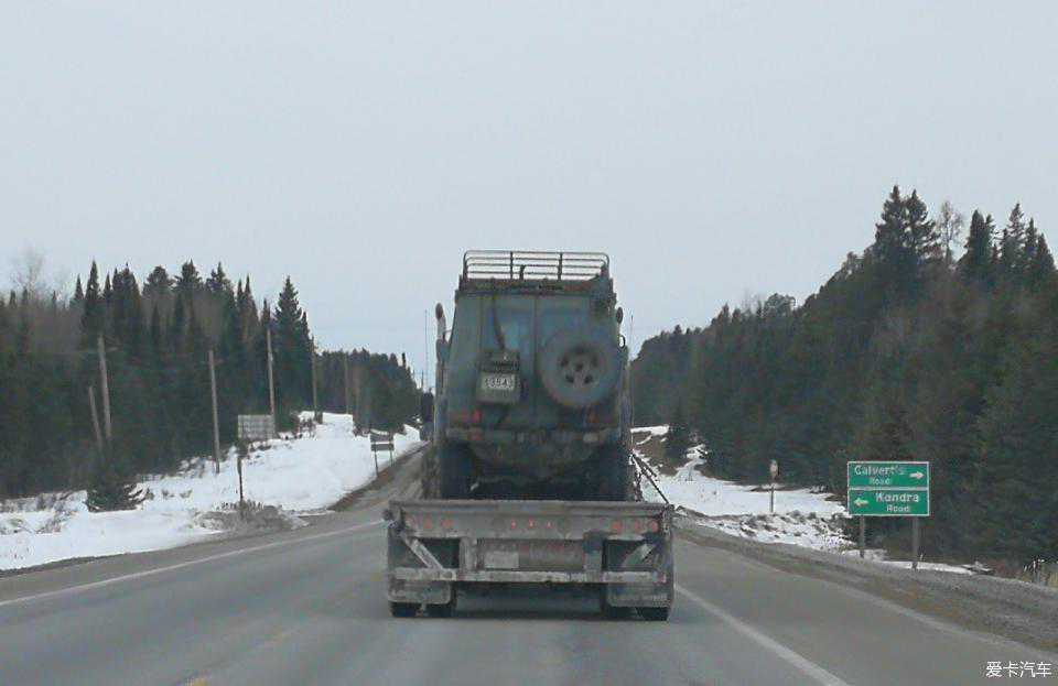重新驶上11号高速,路遇一连串的大卡车上拉着加拿大陆军的各式装备车辆。