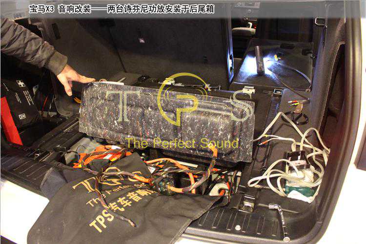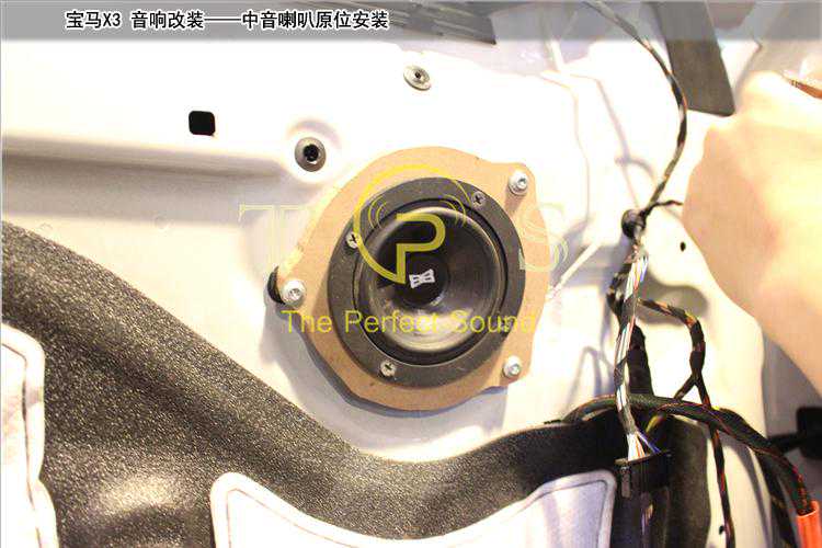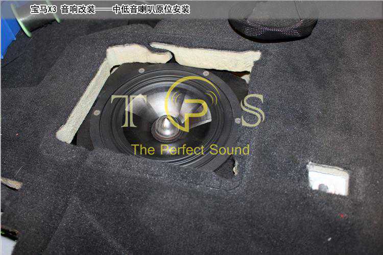 宝马X3音响系统与其它宝马车型大致相同,喇叭的分布是一样的,顶配音响是哈曼卡顿,简配后的宝马X3同样没有高音头,此次改装,升级前声场音响,后声场不动。