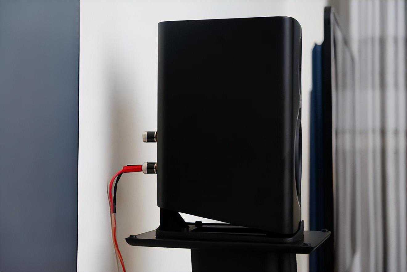 下图是上架安装的样子,背部没有散热器,也非后置式低音反射腔,所以在摆放时只要空开线距离就好,更省空间。