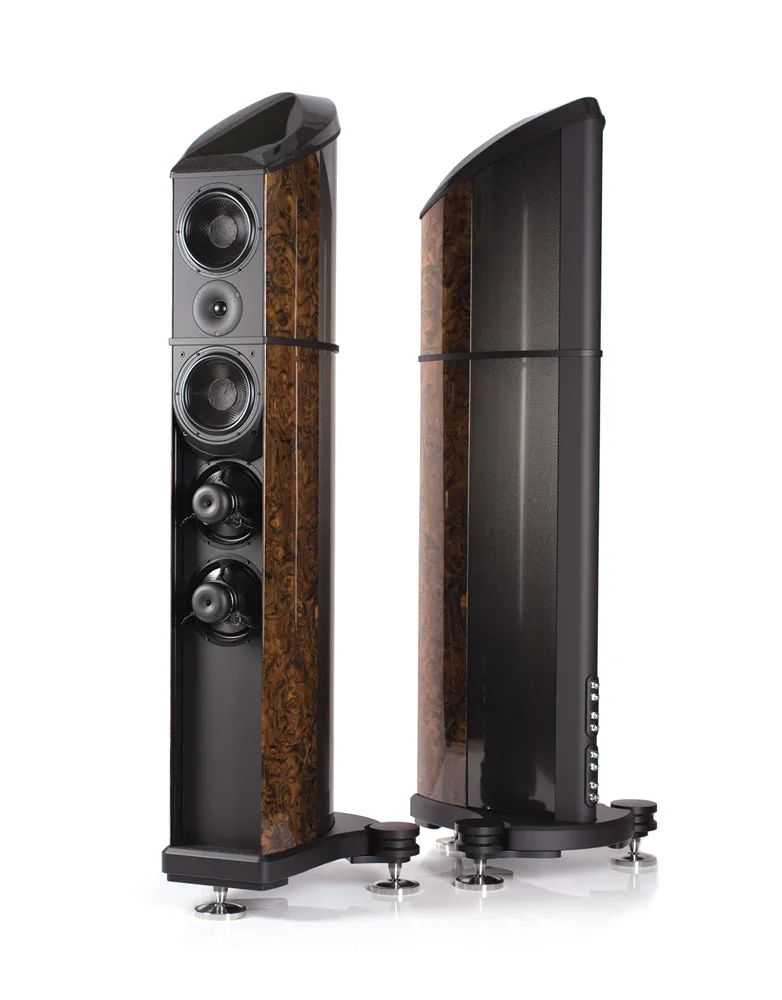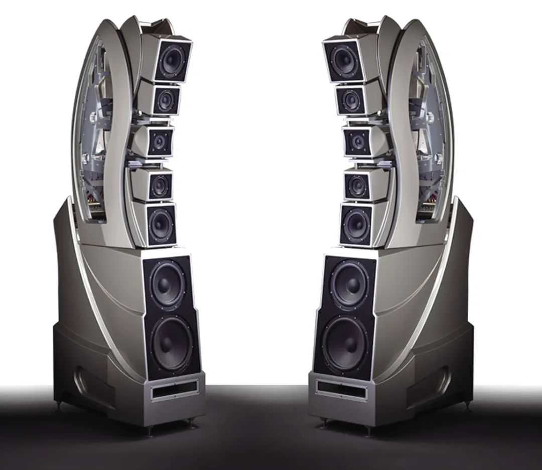 总的来说,音箱制作是一门非常复杂的系统工程,是介于机械工程学、声学、心理学、人机工程学之间的边缘科学技术,既是技术,也是艺术。完成的音箱可以用科学手段量测出技术指标,包括频率响应、信噪比、动态范围、失真度、瞬态响应、立体声分离度、立体声平衡度。但是艺术价值,就无法客观具体的衡量了,对发烧友来说,独特的音箱设计与鲜艳吸睛的颜色,绝对有加分的作用。虽然“扬声器设计手册”无法教导艺术,然而不同品牌的造型DNA,最后都会体现在实际的价格上。笔者找了些第一眼就能吸引眼球的音箱产品与大家分享,它们的设计充满奇思妙想,有部分已经被发烧友接受与喜爱,有些还在争取认同。音箱毕竟是需要发出声音,而发烧友更希望能发出好声音的产品,所以无法太过天马行空,在时尚的蓝牙音箱上有不少创意,但笔者觉得一部分是哗众取宠而已。总体而言,在Hi-Fi音响圈,比较有新意并且愿意大胆尝试的是意大利人与德国人,从下面的图片中大家可以试着找寻自己心仪的目标。全世界音响品牌众多,或有遗珠之憾敬请见谅。
