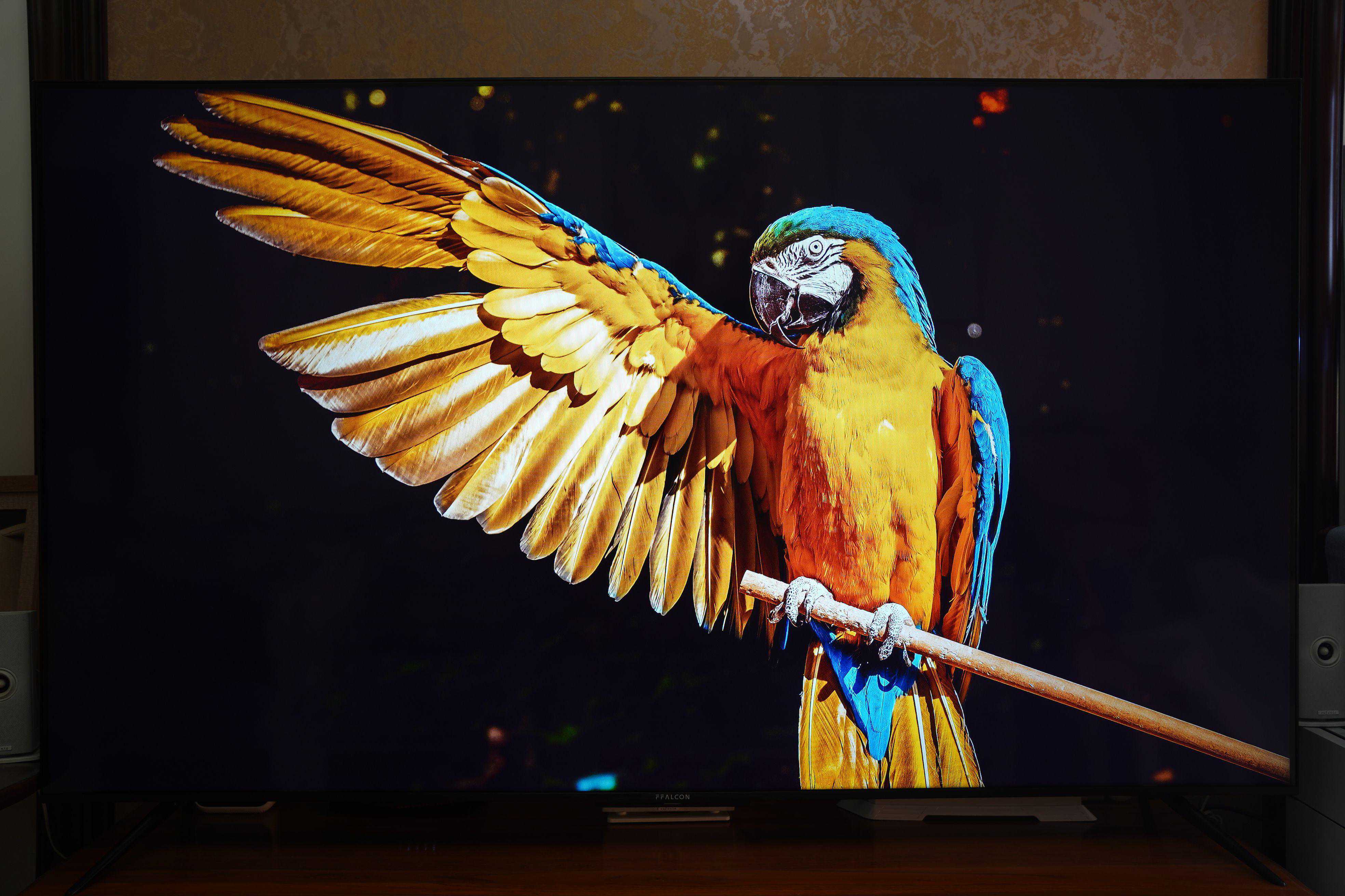 ▼在显示黑色画面时,可以根据算法关闭当前分区的背光从而实现纯粹的“黑”,增加画面的对比度,也让明暗对比较为强烈的区域更清晰不发糊,从下面这张实拍图中也可以看到,黑色的天空几乎与电视机外的背景融为一体,看不到有发亮的情况。