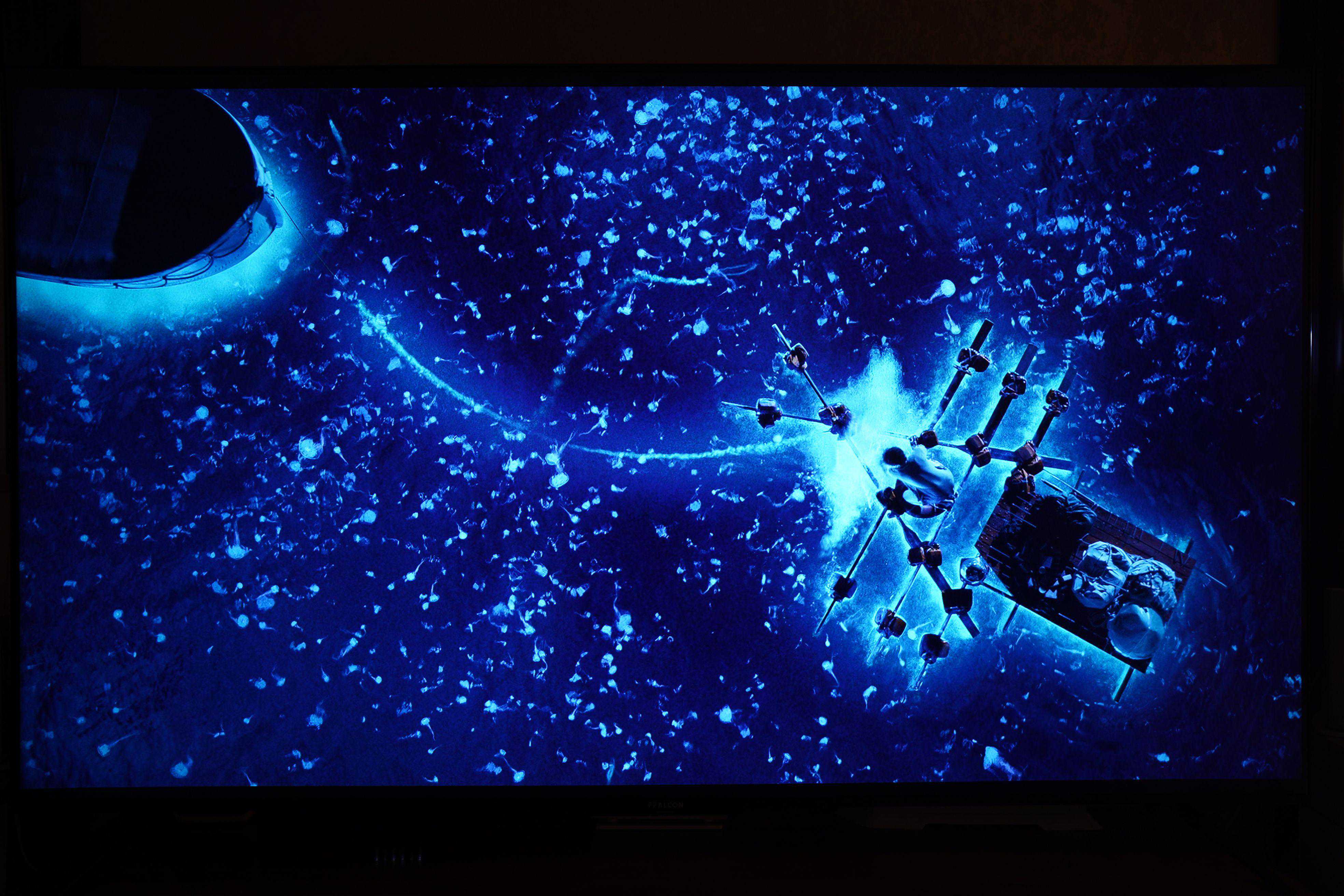 ▼在120个背光分区、峰值亮度750nit、94%P3色域的加持下,以电视为核心的家庭影院在播放电影时能达到什么样的效果呢?我拍摄了静态图片以及播放多部蓝光原盘HDR影片的照片,未对照片做任何调整,大家直观的可以感受一下: