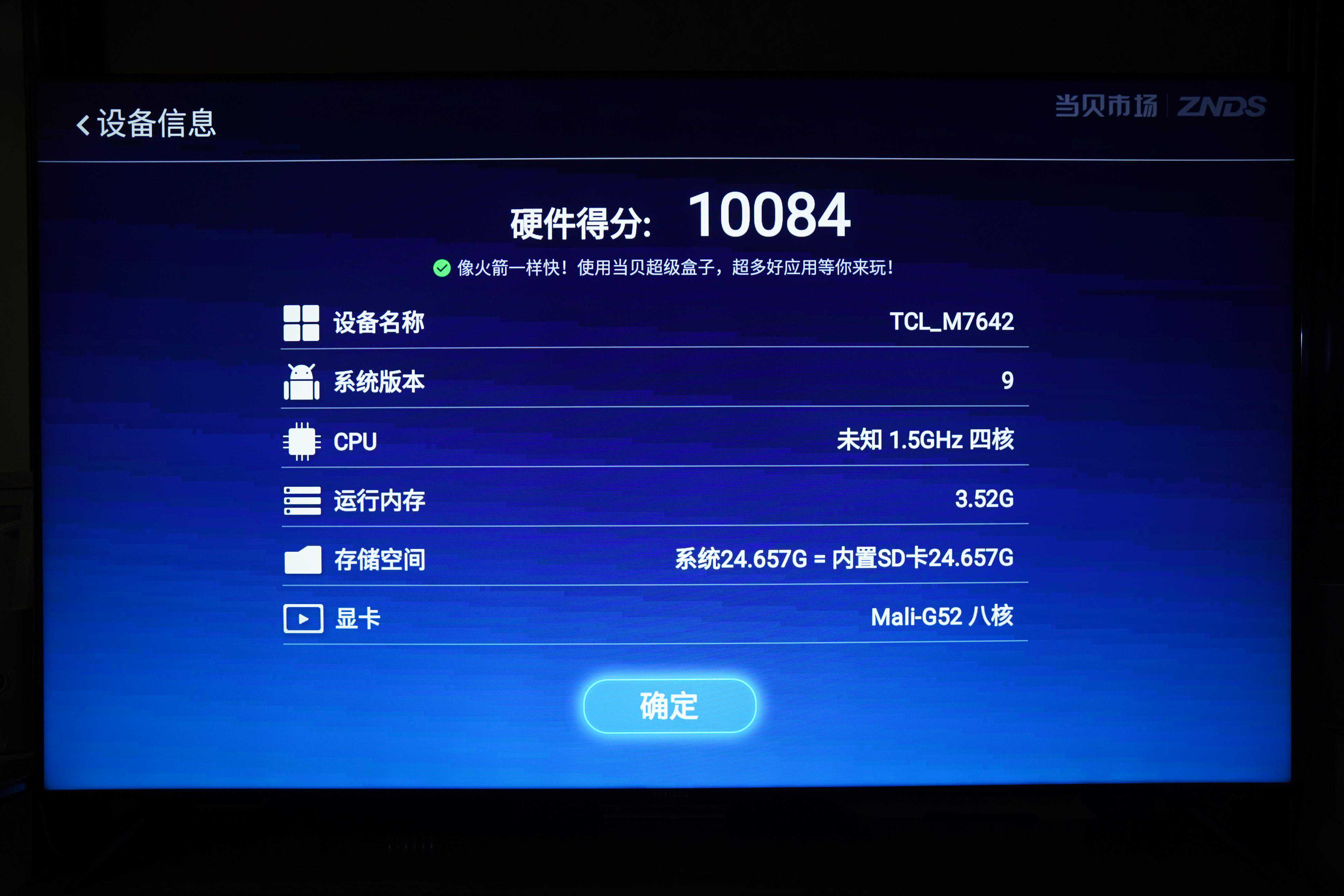 ▼以我这台雷鸟75S545C为例,这台电视使用的是MTK9652的CPU,4*Cortex-A73处理器,以及2*Mali-G52的图形处理器,频率最高可达2.8GHz,是目前智能电视、智能投影仪产品里较为高端的CPU,而且运行内存达到了4G,无论是解码能力还是反应速度都有足够的保障。