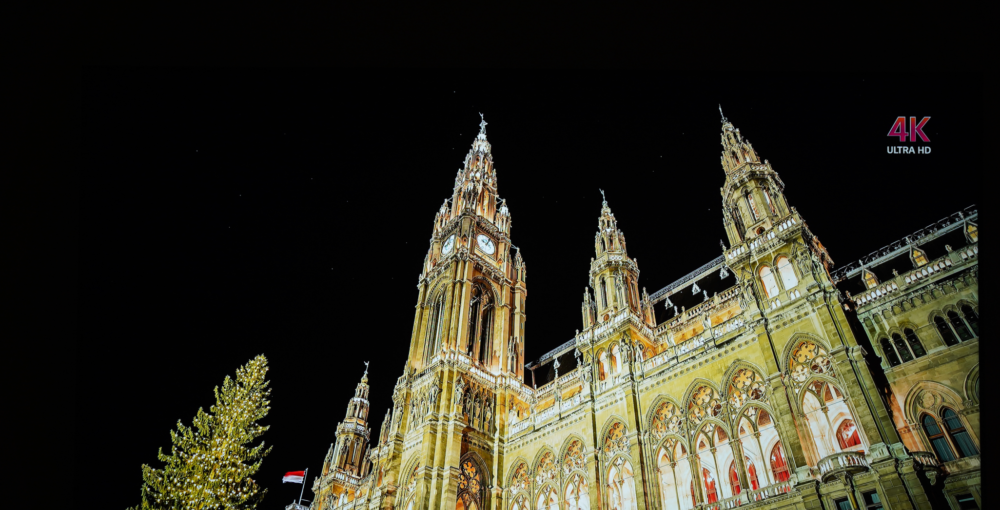 ▼在显示黑色画面时,可以根据算法关闭当前分区的背光从而实现纯粹的“黑”,增加画面的对比度,也让明暗对比较为强烈的区域更清晰不发糊,从下面这张实拍图中也可以看到,黑色的天空几乎与电视机外的背景融为一体,看不到有发亮的情况。