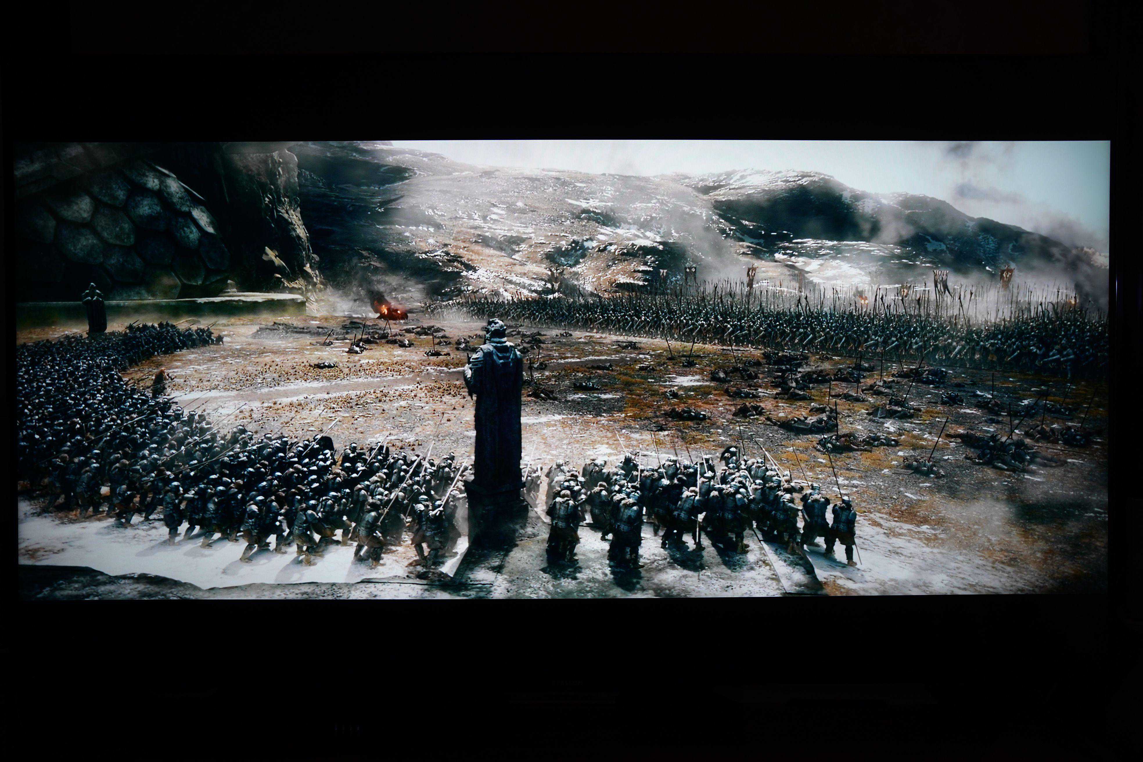 ▼在120个背光分区、峰值亮度750nit、94%P3色域的加持下,以电视为核心的家庭影院在播放电影时能达到什么样的效果呢?我拍摄了静态图片以及播放多部蓝光原盘HDR影片的照片,未对照片做任何调整,大家直观的可以感受一下: