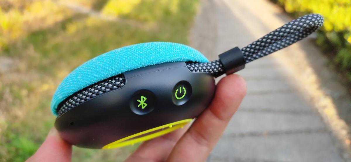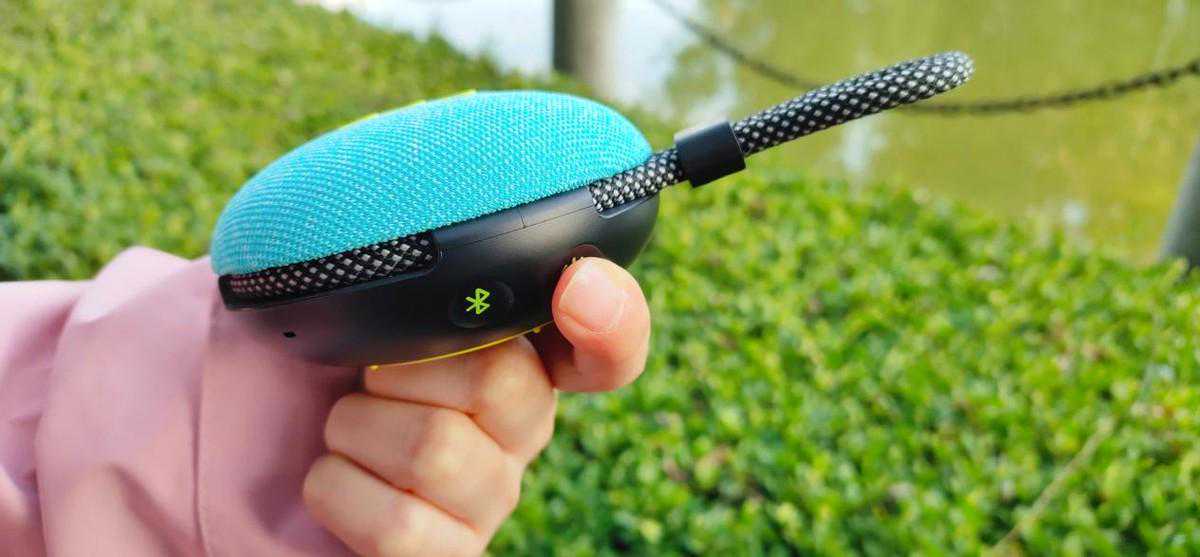 这款音箱给我最大的冲击就是它整体的配色,不仅有淡雅耐脏的森林绿,也有青春活力辨识度高的碧湖青,都是非常青春的配色设计,这个设计获得了“IF”设计大奖,整体类似汉堡的设计单手即可轻松持握,包装内含有音箱主体,魔术贴挂绳,说明书和充电线各一份。